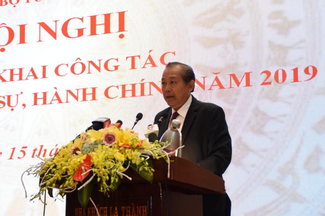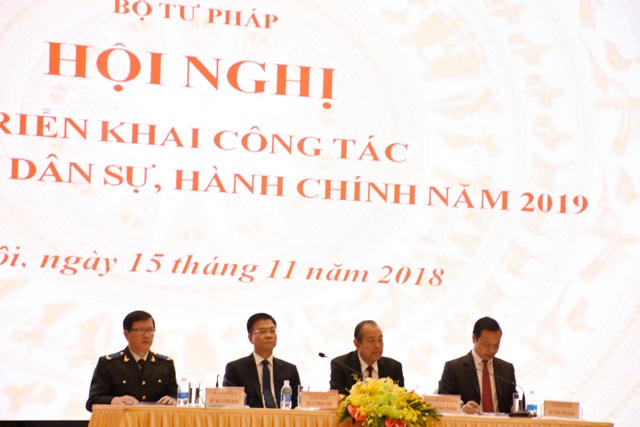 Trong bối cảnh hiện nay, Phó Thủ tướng yêu cầu Bộ Tư pháp, Hệ thống THADS cần bám sát các chỉ đạo của Quốc hội, Chính phủ, Thủ tướng Chính phủ, nỗ lực triển khai đồng bộ, toàn diện các mặt công tác thi hành án năm 2019. Theo đó, Phó Thủ tướng lưu ý, phải tập trung tham mưu Chính phủ, Thủ tướng Chính phủ nghiên cứu, hoàn thiện thể chế, chính sách pháp luật về THADS để tháo gỡ những khó khăn, vướng mắc trong thực tiễn, kịp thời đáp ứng yêu cầu phát triển kinh tế - xã hội của đất nước; rà soát các vướng mắc trong việc thực hiện thí điểm xử lý nợ xấu…