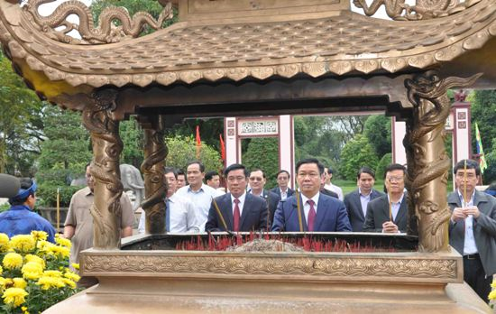 Sau khi rời sân bay, Phó Thủ tướng Vương Đình Huệ cùng đoàn công tác đã đến dâng hoa, dâng hương tại Bảo tàng Quang Trung (huyện Tây Sơn).