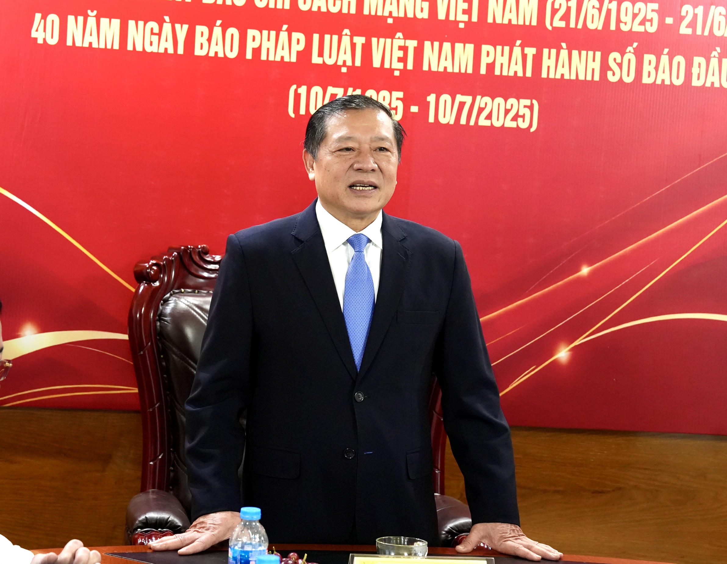 Thay mặt lãnh đạo Ban Tuyên giáo và Dân vận Trung ương, đồng chí biểu dương những đóng góp tích cực của Báo Pháp luật Việt Nam trong thời gian qua. Trong bối cảnh đất nước sắp bước vào chuỗi sự kiện trọng đại như: hoàn tất sáp nhập đơn vị hành chính cấp tỉnh, cấp huyện vào ngày 1/7; kỷ niệm 80 năm thành lập nước; tổ chức Đại hội Đảng các cấp tiến tới Đại hội toàn quốc lần thứ XIV; bầu cử Quốc hội và HĐND các cấp… Trong bối cảnh đó, báo chí sẽ phải gánh vác khối lượng công việc rất lớn, đặc biệt là theo dõi, phản ánh kịp thời các mô hình tổ chức chính quyền mới ở cấp tỉnh, cấp xã – nơi sẽ đảm nhận hơn 1.000 nhiệm vụ mới. Báo chí cần cổ vũ những nỗ lực tích cực, đồng thời phát hiện, phản ánh các bất cập để Đảng và Nhà nước có hướng điều chỉnh phù hợp.