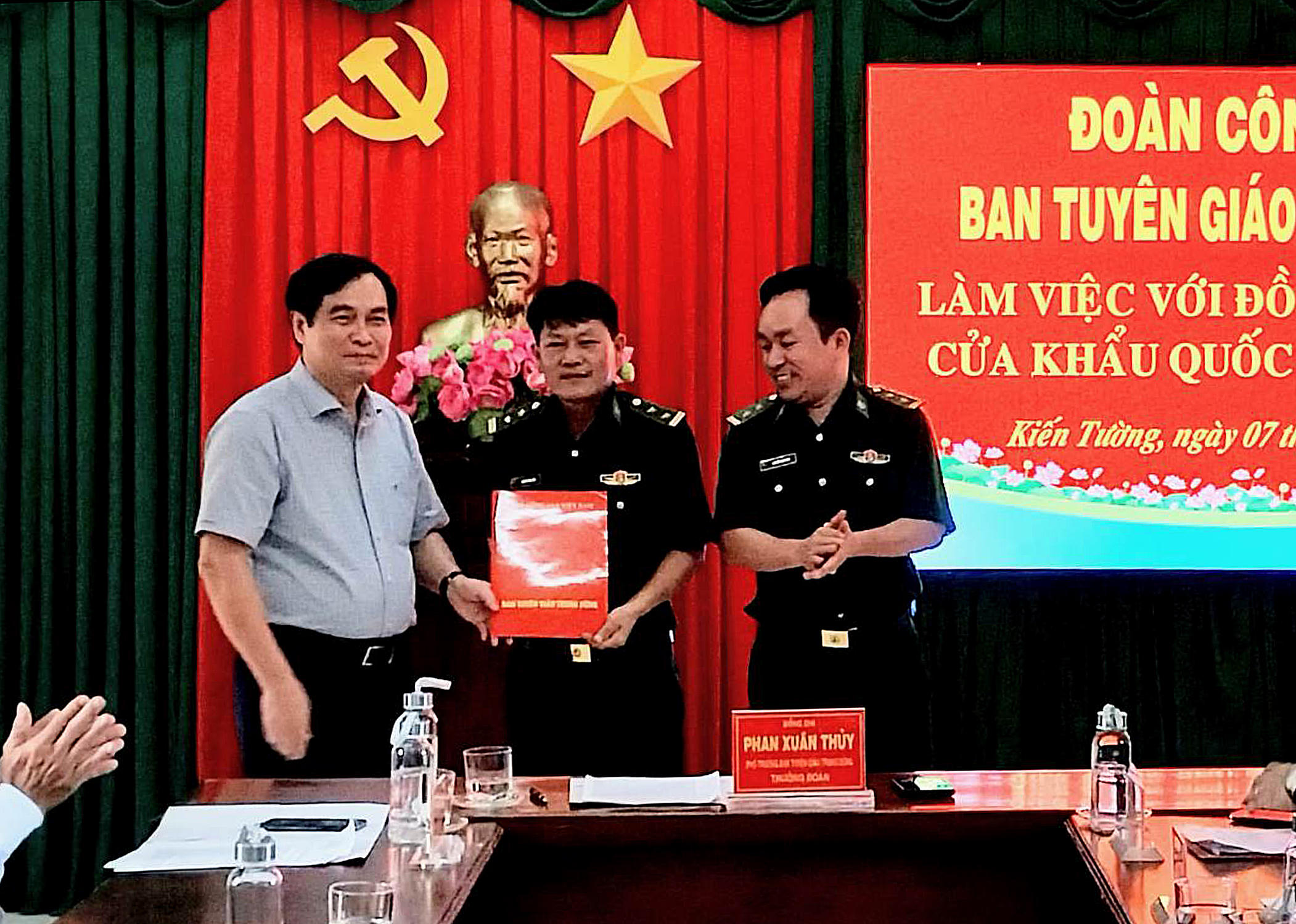 (PLVN) - Chiều 7/6, Đoàn công tác của Ban Tuyên giáo Trung ương (TƯ) do đồng chí Phan Xuân Thủy – Phó Trưởng ban Tuyên giáo Trung ương làm Trưởng đoàn đã có buổi làm việc tại Đồn Biên phòng Cửa khẩu Quốc tế (CKQT) Bình Hiệp (Bộ đội Biên phòng Long An) nhân chuyến công tác tại tỉnh Long An.