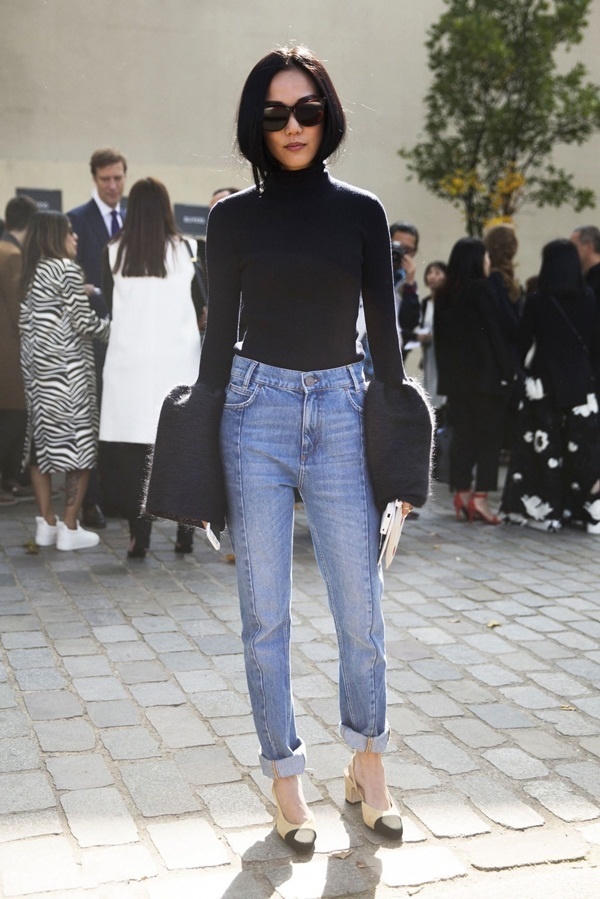 Quy tắc bù trừ này tạo sự cân bằng, thẩm mỹ trong thời trang. Với quần, nên chọn quần ôm dáng như skinny jeans hoặc quần âu ống đứng.