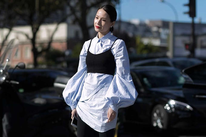 Nếu theo đuổi phong cách mặc nhiều lớp, bạn có thể kết hợp áo tay phồng với crop-top, bra-top bên ngoài.