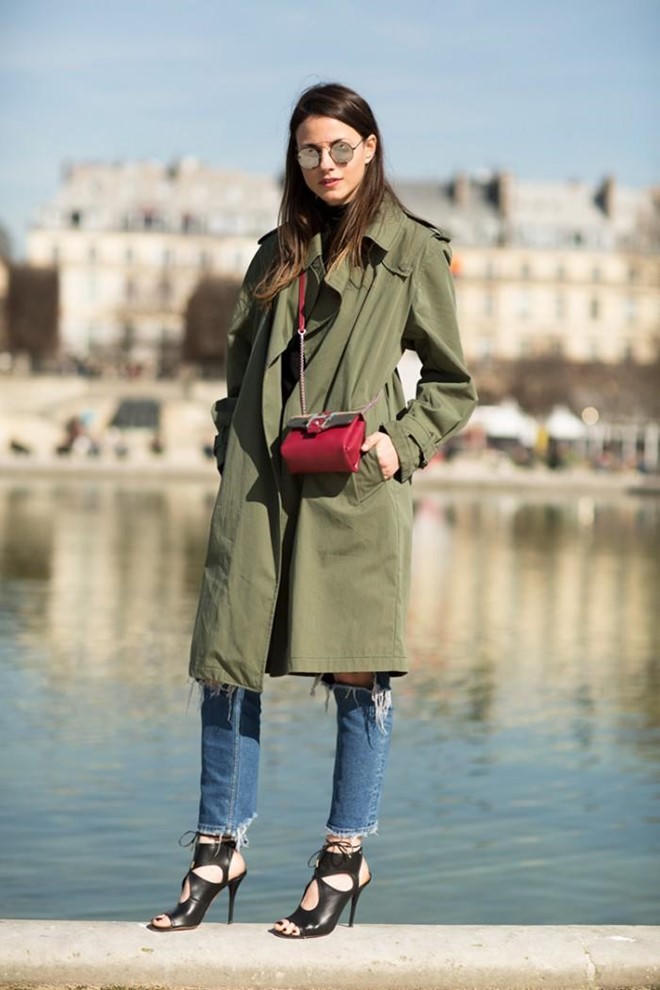 10. Cảm hứng military: Chiếc áo choàng của quân nhân được cách điệu mềm mại và đa dạng hơn trong các thiết kế dành cho phái đẹp. Kết hợp loại áo này với bộ suit hoặc với áo sơ mi và quần skinny là bạn có thể hoàn thiện bộ đồ đậm chất menswear. Trang điểm tự nhiên cùng mái tóc gọn gàng sẽ phù hợp cho môi trường công sở.