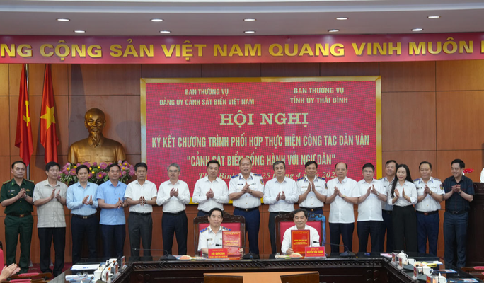 Chiều 25/4, Ban Thường vụ Tỉnh ủy Thái Bình và Ban Thường vụ Đảng ủy Cảnh sát biển Việt Nam tổ chức hội nghị ký kết chương trình phối hợp thực hiện công tác dân vận “Cảnh sát biển đồng hành với ngư dân”.
