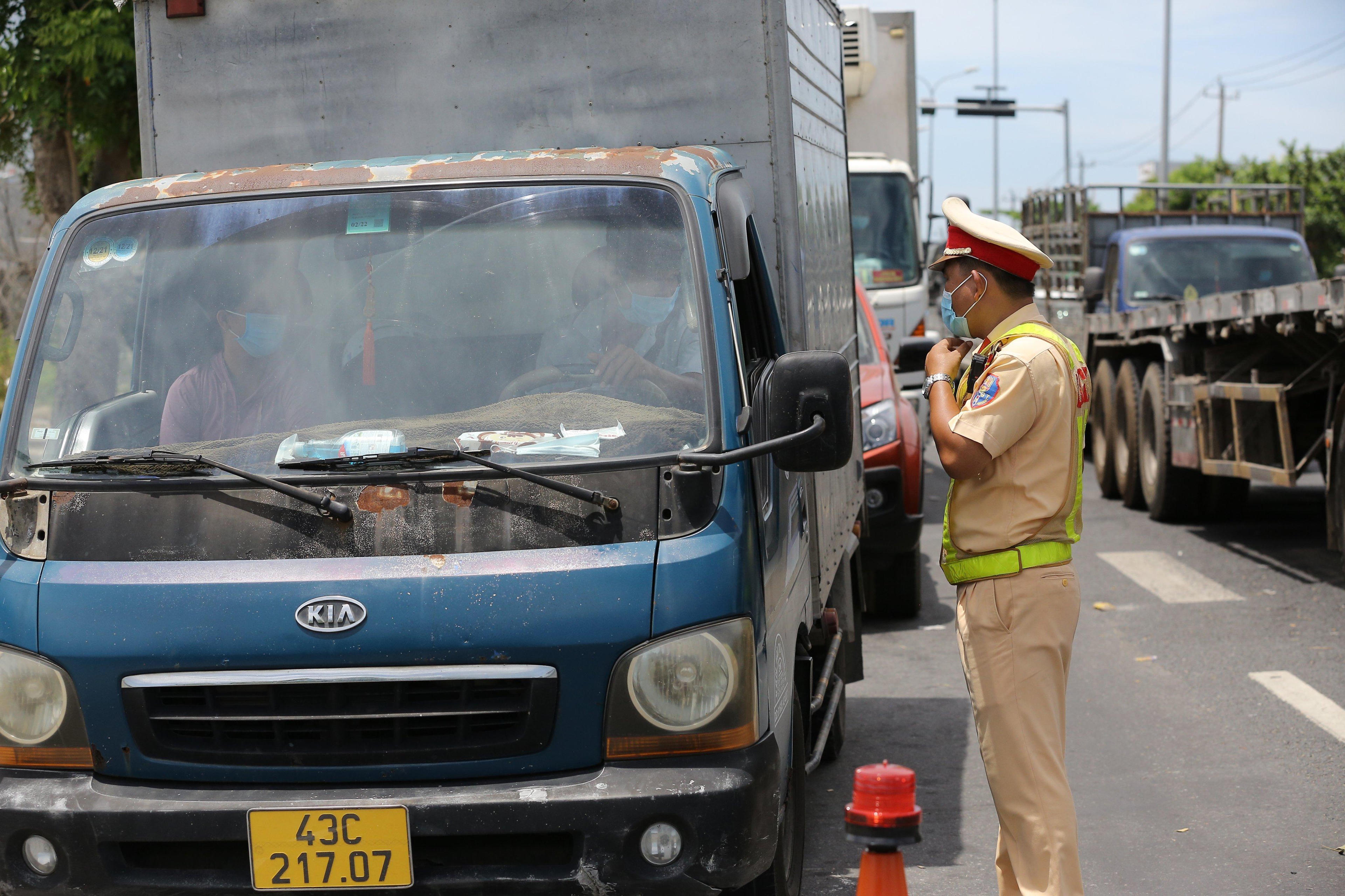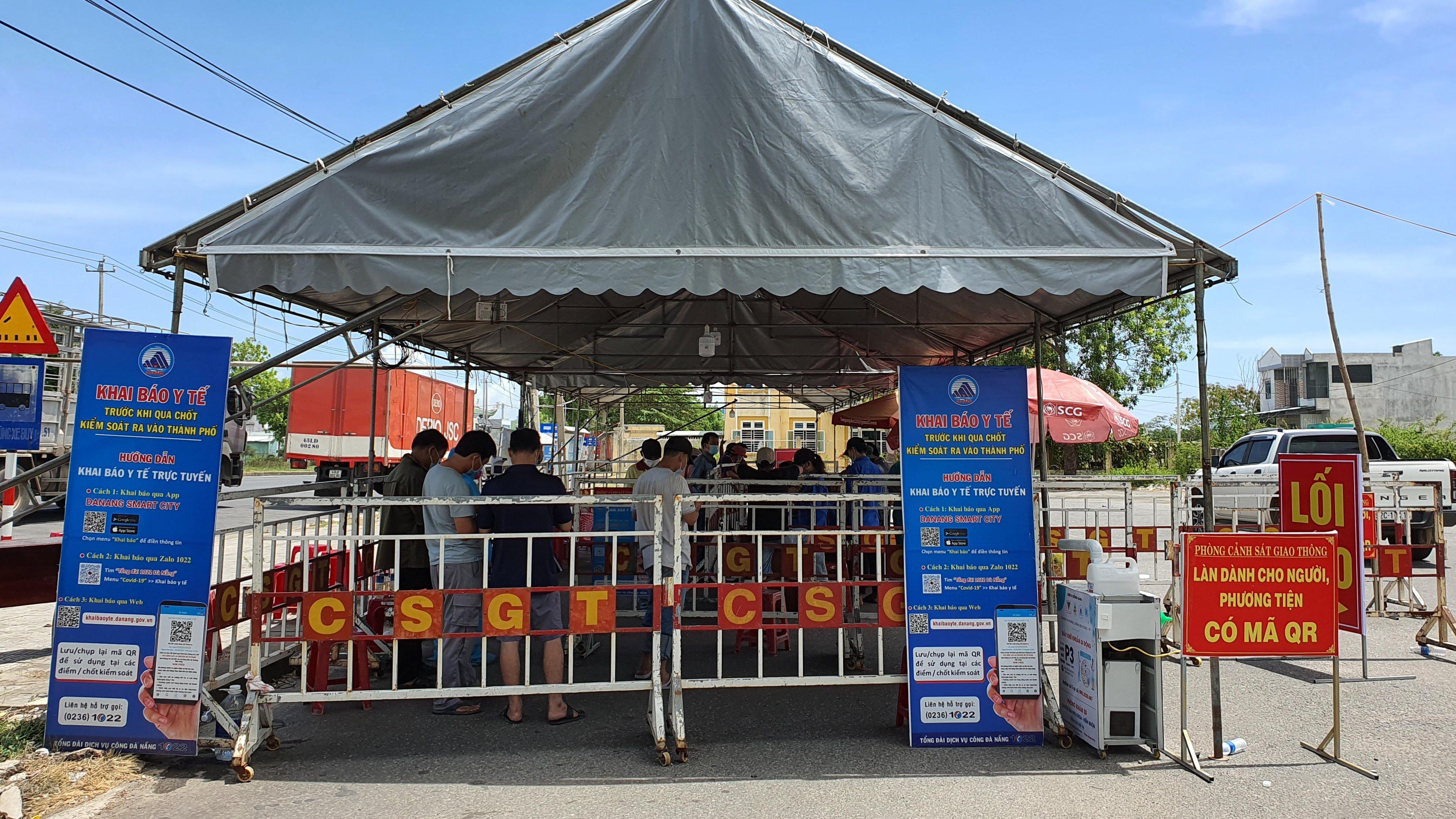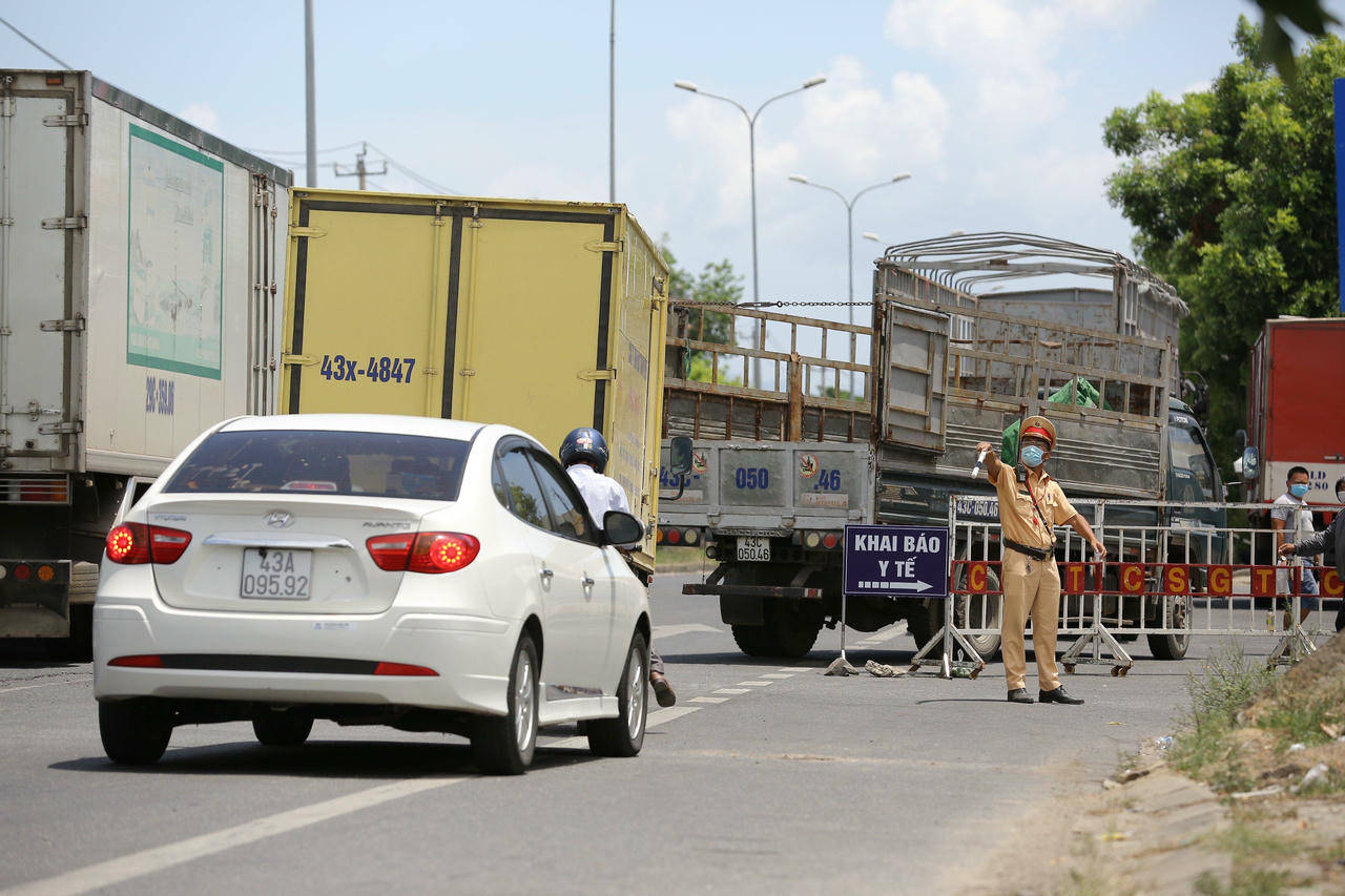 Tại chốt kiểm soát dịch COVID-19 trên Quốc lộ 1, đoạn qua xã Hòa Phước (huyện Hòa Vang, Đà Nẵng), phương tiện qua lại rất tấp nập, bởi đây là khu vực giáp ranh với tỉnh Quảng Nam.