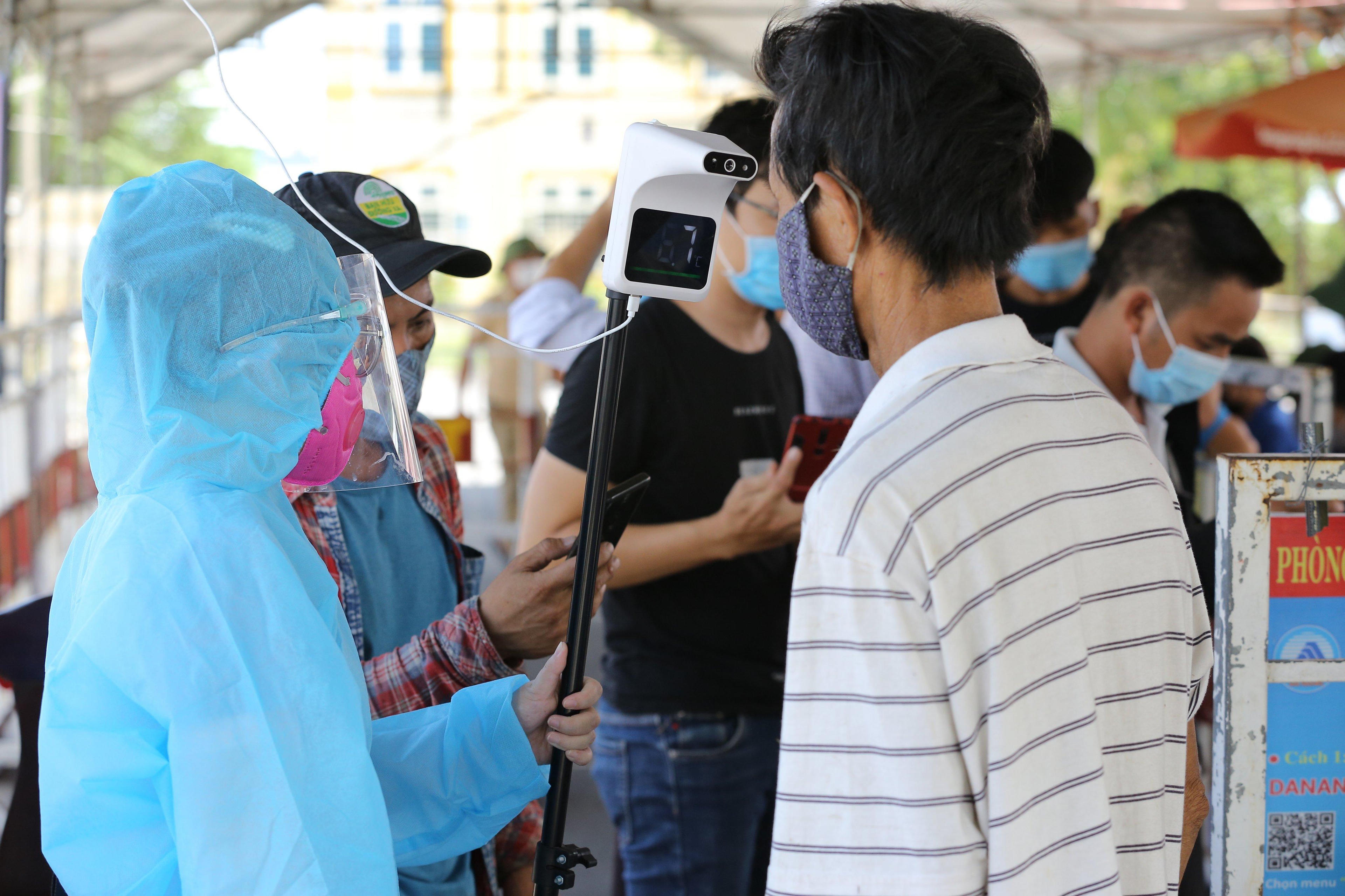 Tất cả đều được đo thân nhiệt trước khi vào khu vực khai báo y tế.