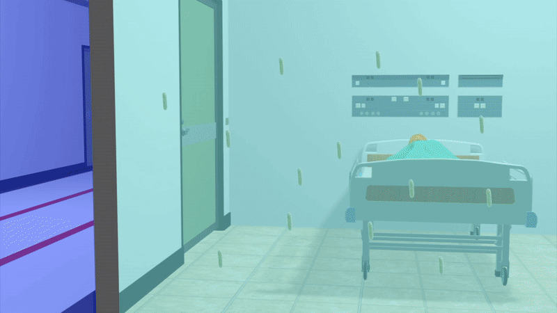 Đường đi của các giọt bắn này còn phức tạp hơn khi dòng không khí trong một bệnh viện chuyển động tự do. Không khí sẽ đi từ nơi có áp suất cao đến nơi có áp suất thấp. Chúng có thể mang theo các giọt chứa virus từ một bệnh nhân đang ở trong phòng ra ngoài hành lang, lây nhiễm cho những bác sĩ và bệnh nhân khác đang ở đó.
