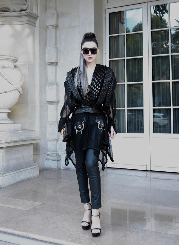 Tuy nhiên tại tuần thời trang Paris hồi tháng 10, người đẹp "nổi loạn" với mái tóc khói bạc thời thượng cùng trang phục cá tính.