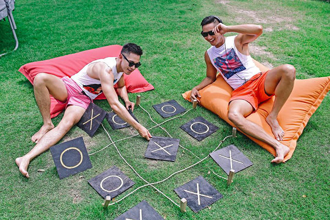 Ngoài cách phối hợp nhịp nhàng các kiểu trang phục theo cùng một style nhưng đối lập về màu sắc, Hồ Vĩnh Khoa và bạn trai của mình còn diện đồ đôi khá nhí nhảnh.