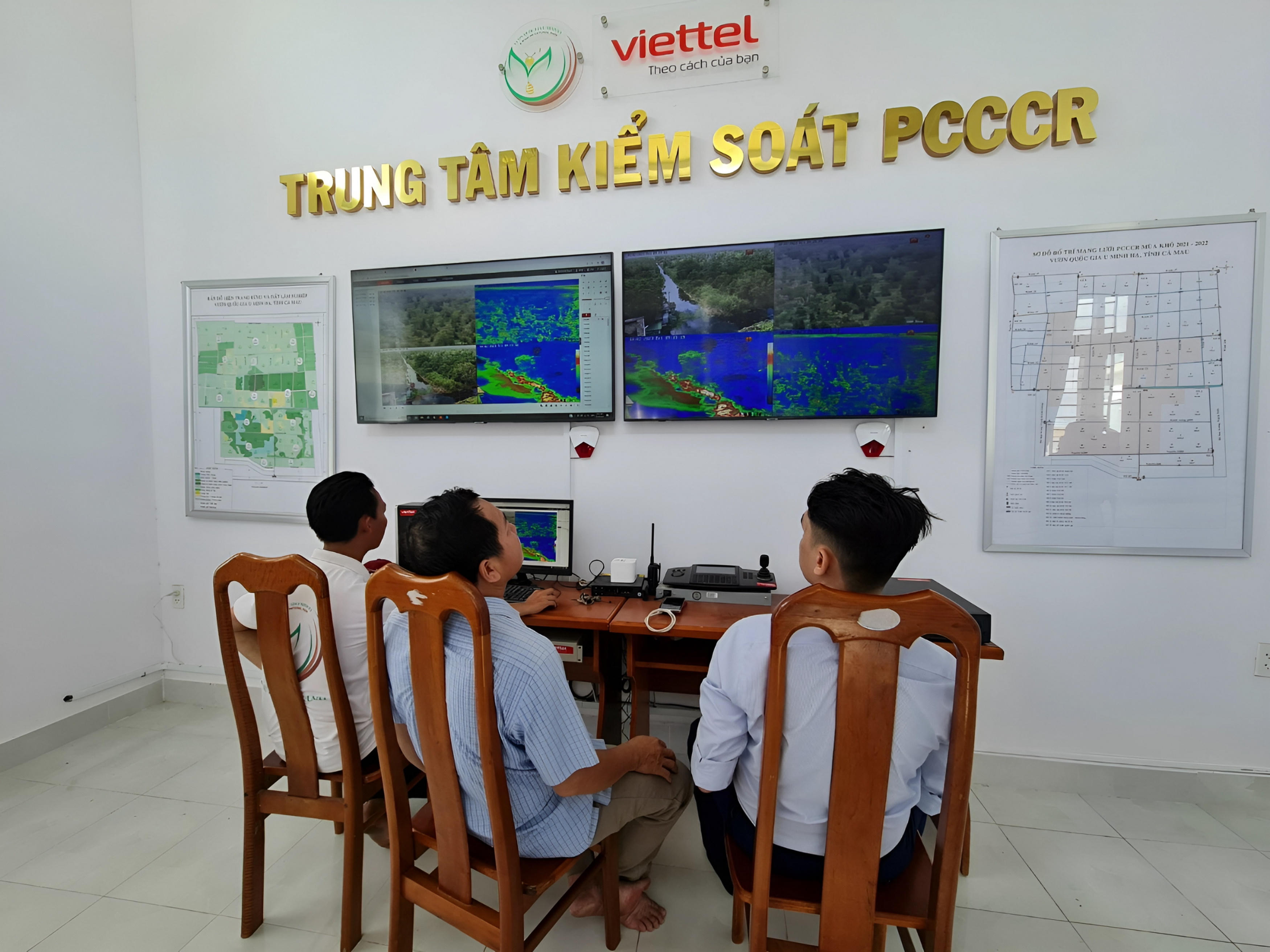 Lực lượng PCCCR tại Vườn quốc gia U Minh Hạ quan sát qua hệ thống camera để kịp thời phát hiện những vụ cháy rừng có thể xảy ra (Ảnh: Vườn quốc gia U Minh hạ). |