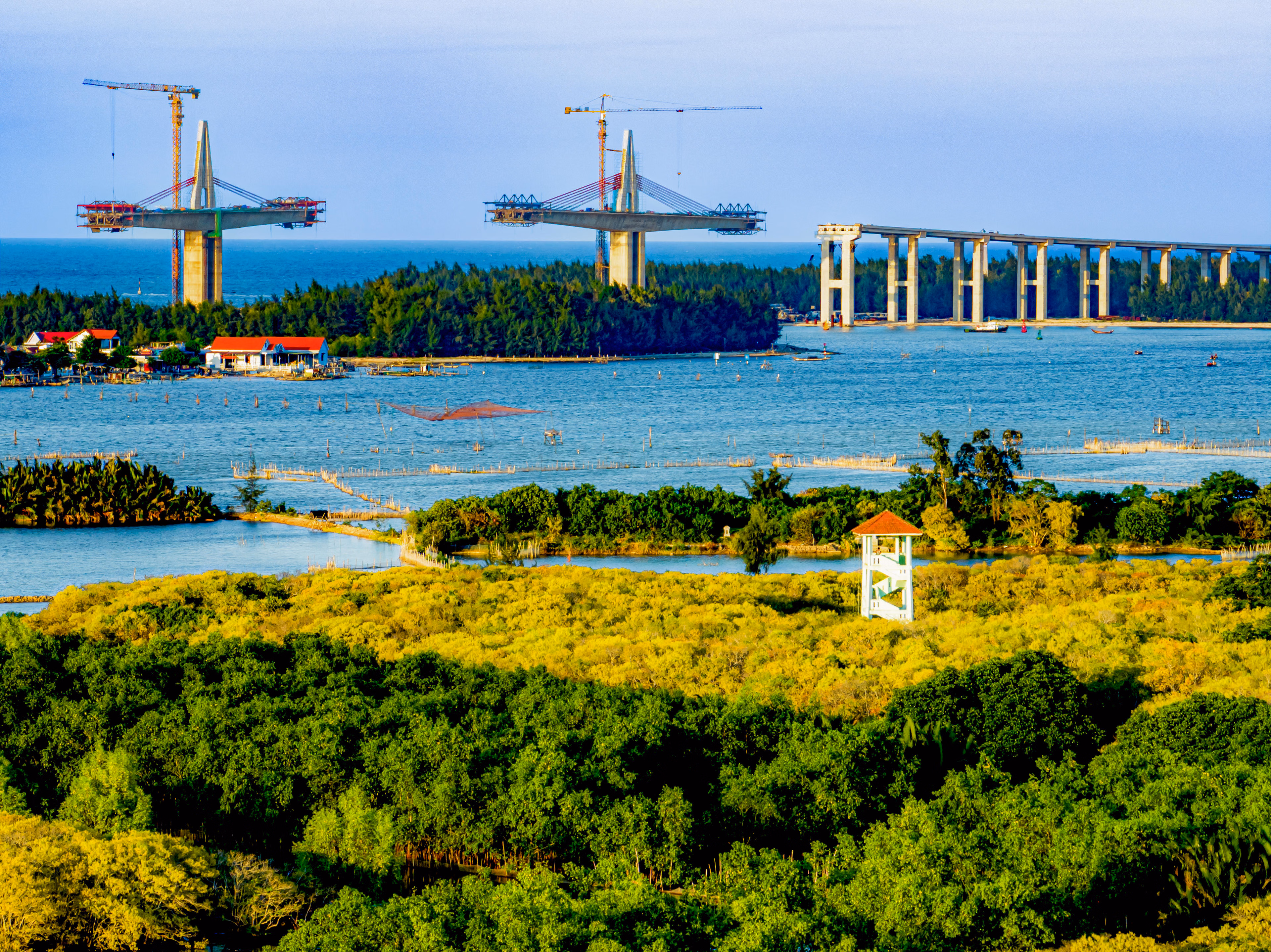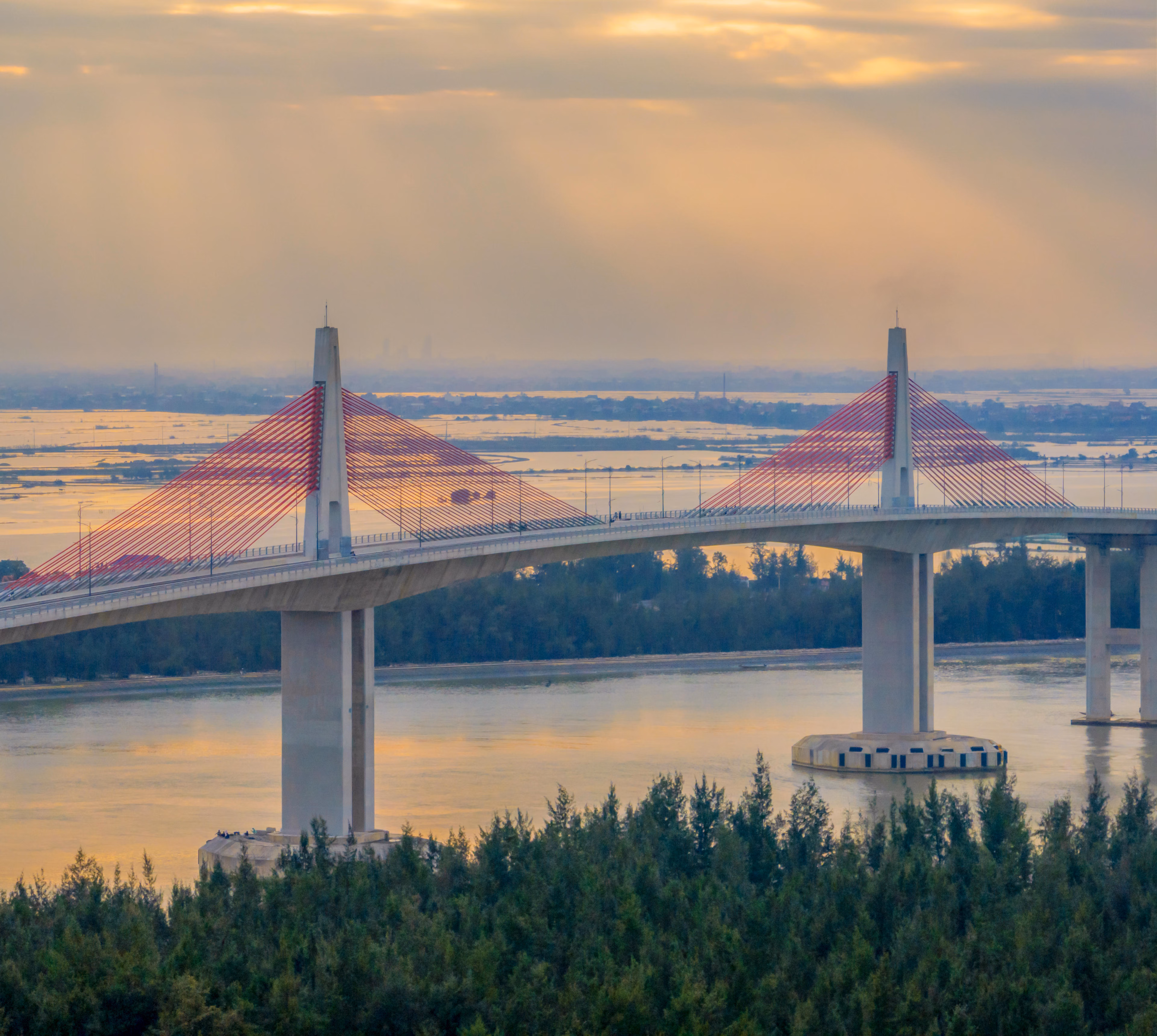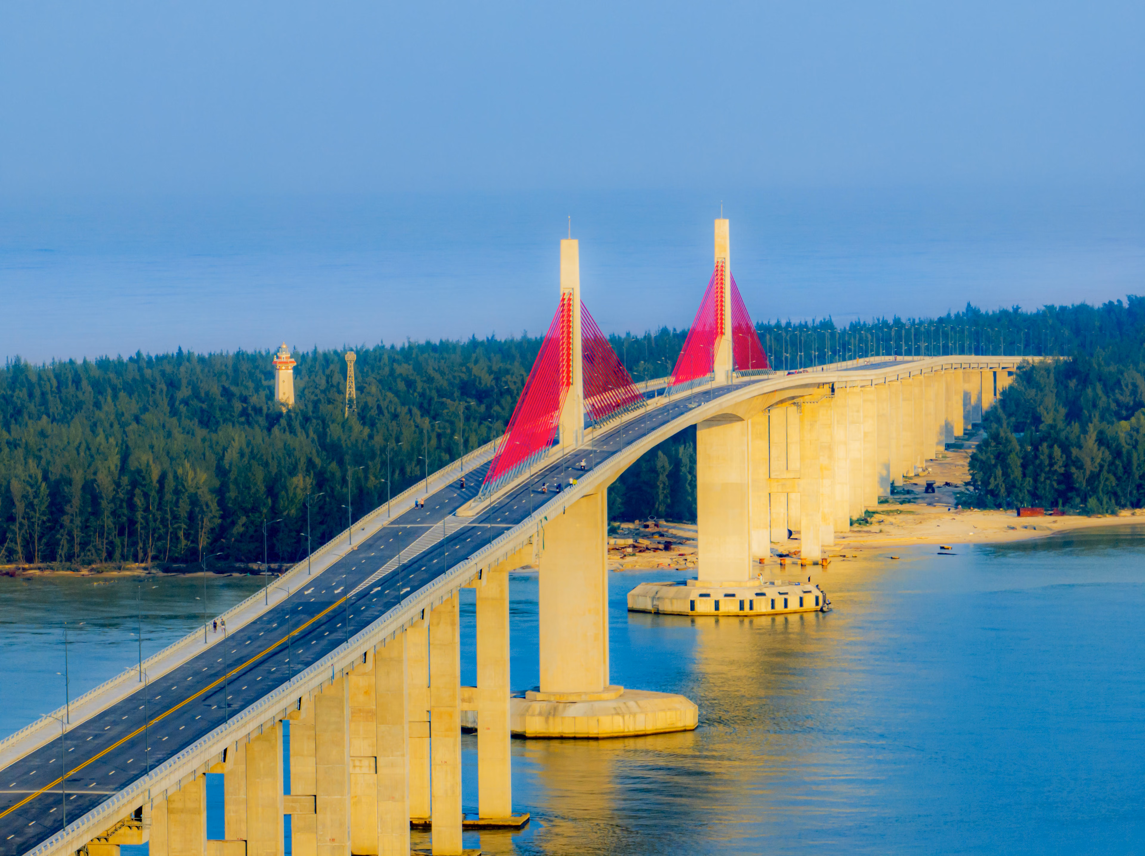 Cầu vượt cửa biển Thuận An hiện lên bề thế với sắc đỏ dây văng nổi bật giữa trời nước mênh mông. Không chỉ là cây cầu vượt biển dài nhất miền Trung, công trình còn mở ra một trục không gian phát triển hoàn toàn mới, từ đó Huế từng bước chuyển mình, tiến gần hơn với đại dương và khát vọng hình thành một cực tăng trưởng kinh tế biển năng động, hiện đại, bền vững.