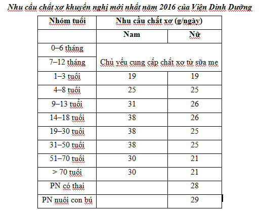 Lượng chất xơ cần mỗi ngày theo lứa tuổi