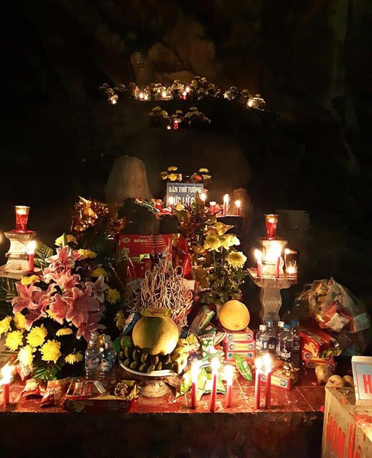 Bàn thờ Thừa tướng Lữ Gia trong hang Cắc Cớ, chùa Thầy (Hà Nội). |