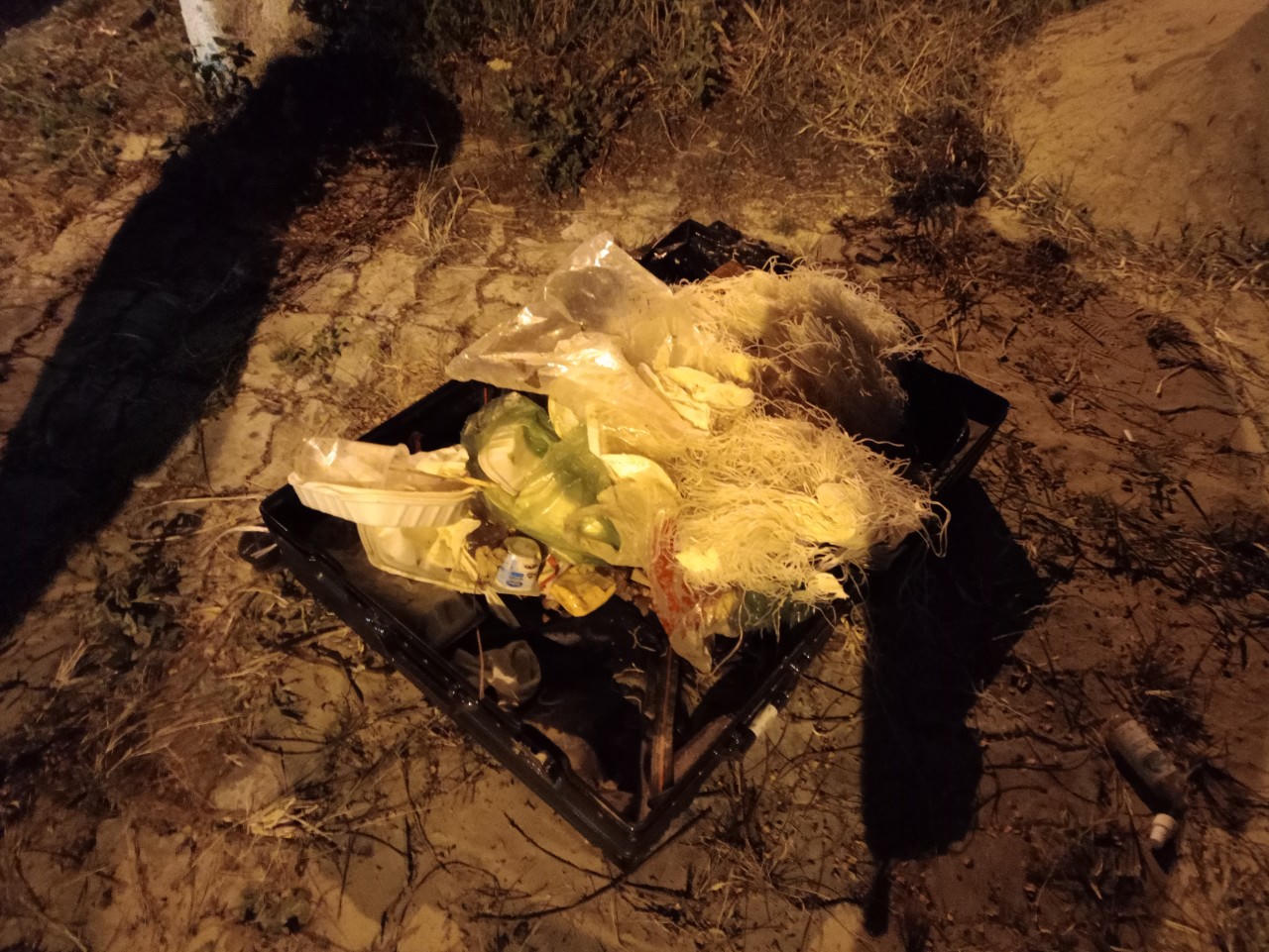 Bên trong chiếc vali chỉ có rác và miến khô. |