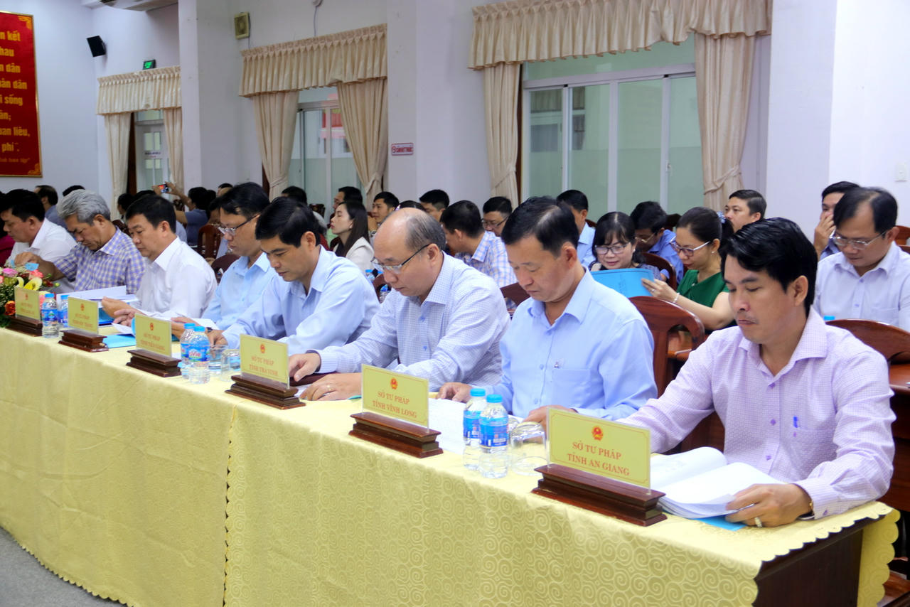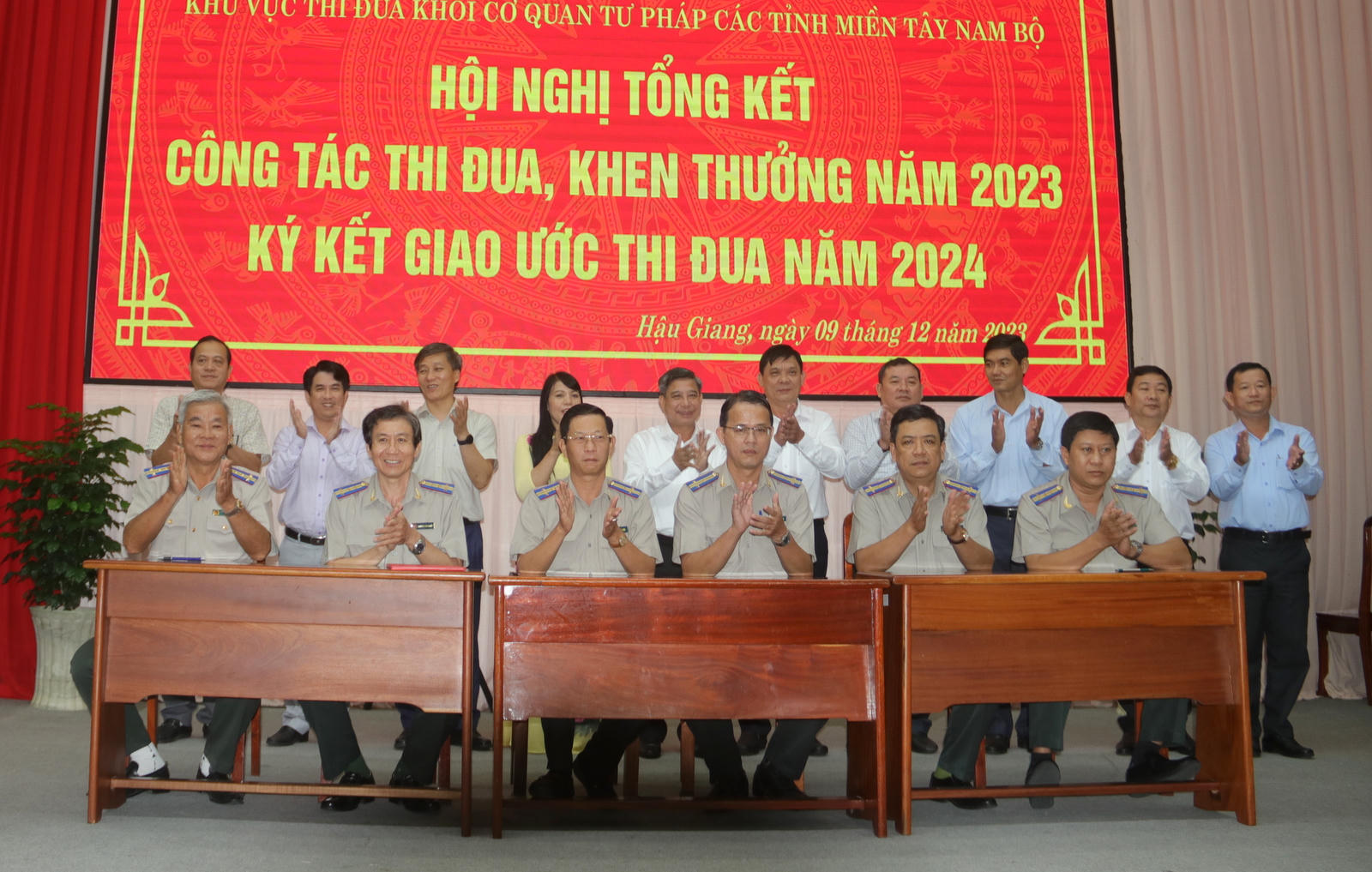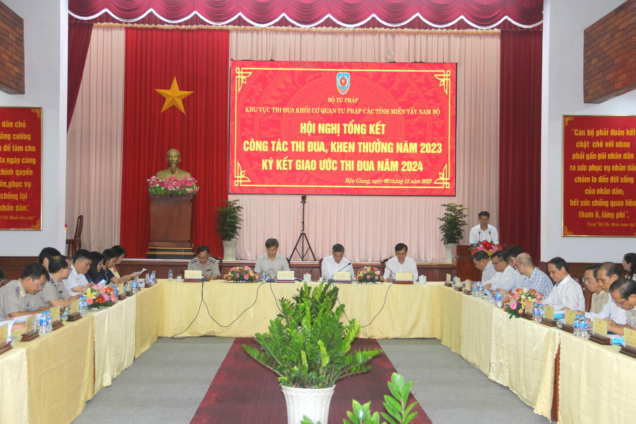 Tại hội nghị, các đại biểu thống nhất bỏ phiếu bình xét suy tôn đơn vị xuất sắc để nhận Cờ thi đua của Chính phủ và Cờ thi đua của ngành Tư pháp. Dịp này, Bộ Tư pháp cũng công bố quyết định về việc chia tách khu vực thi đua. Theo đó, Khu vực thi đua khối cơ quan tư pháp các tỉnh miền Tây Nam Bộ sẽ được tách thành khu vực thi đua các tỉnh Bắc sông Hậu và khu vực thi đua các tỉnh Nam sông Hậu. Cụ thể, Khu vực thi đua các tỉnh Bắc sông Hậu bao gồm: An Giang, Bến Tre, Đồng Tháp, Long An, Tiền Giang và Vĩnh Long; Khu vực thi đua các tỉnh Nam sông Hậu gồm các tỉnh: Hậu Giang, Sóc Trăng, Bạc Liêu, Cà Mau, Kiên Giang và Trà Vinh.
