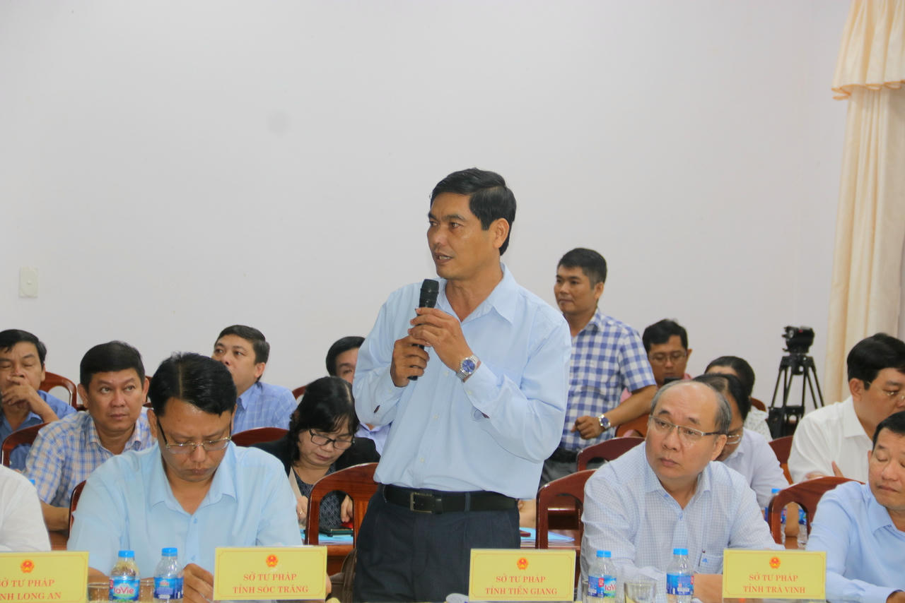 Ông Phạm Công Hùng – Giám đốc Sở Tư pháp Tiền Giang trình bày ý kiến tại Hội nghị |