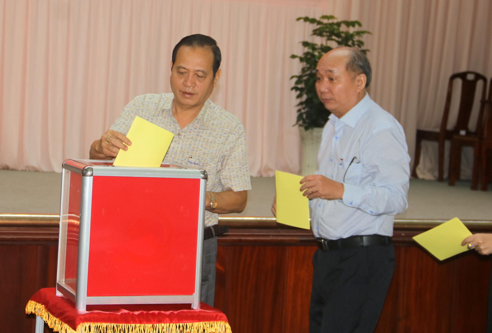 Đại biểu bỏ phiếu bình xét suy tôn đơn vị xuất sắc nhận Cờ thi đua ngành Tư pháp |