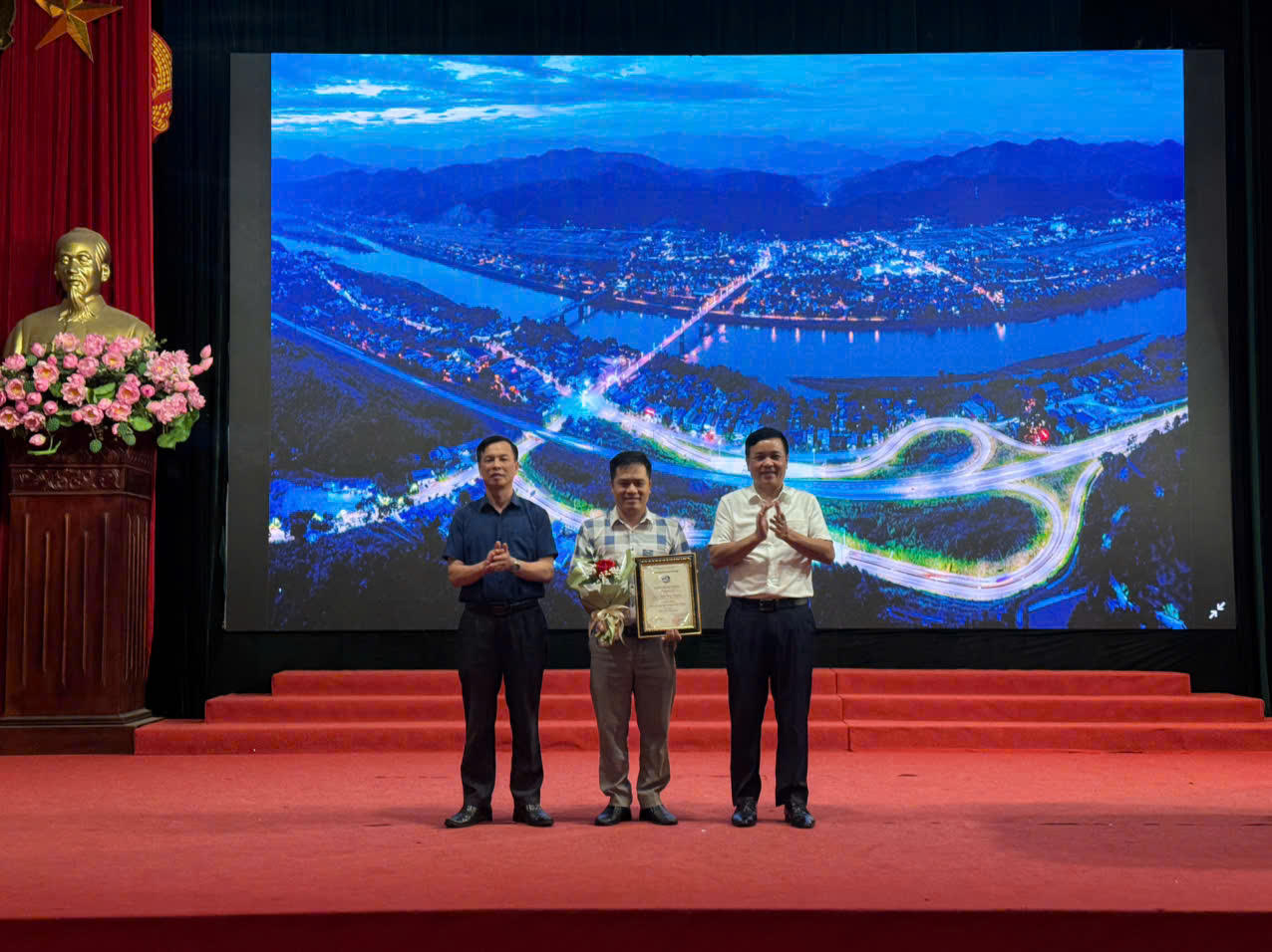 Lãnh đạo huyện Bảo Thắng trao giải Nhất cho tác giả |