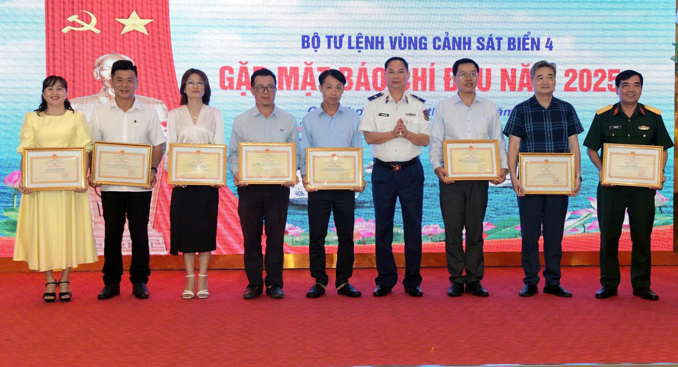 Bộ tư lệnh Vùng Cảnh sát biển 4 tặng Giấy khen cho các tập thể, cá nhân cho các cơ quan báo chí có nhiều thành tích trong công tác phối hợp tuyên truyền. Ảnh: Chí Bảo |