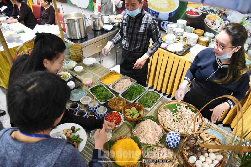 (PLVN) -Trưa 26/2, tại Trung tâm Báo chí quốc tế hội nghị thượng đỉnh Mỹ - Triều, nhiều phóng viên trong và ngoài nước đều tỏ ra thích thú khi được thưởng thức bữa trưa là những món ăn truyền thống Việt Nam như bún chả, nem, phở, cà phê trứng...