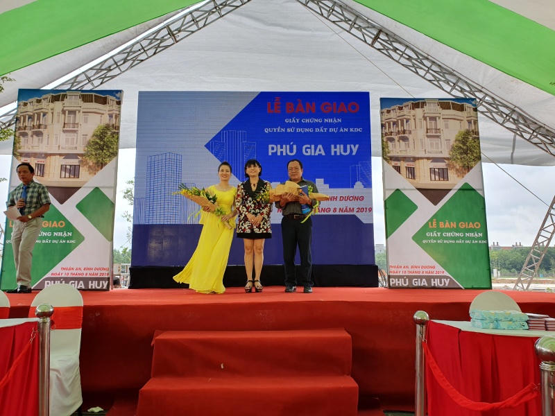 (PLVN) - Sáng ngày 10/8/2019, Công ty TNHH Bất động sản Phú Hồng Thịnh long trọng tổ chức Lễ bàn giao 329 Giấy chứng nhận Quyền sử dụng đất cho các khách hàng thuộc Dự án Khu nhà ở Thương mại Phú Gia Huy với tổng diện tích hơn 37.822 m2 tại khu phố Bình Phước B, phường Bình Chuẩn, thị xã Thuận An, tỉnh Bình Dương.