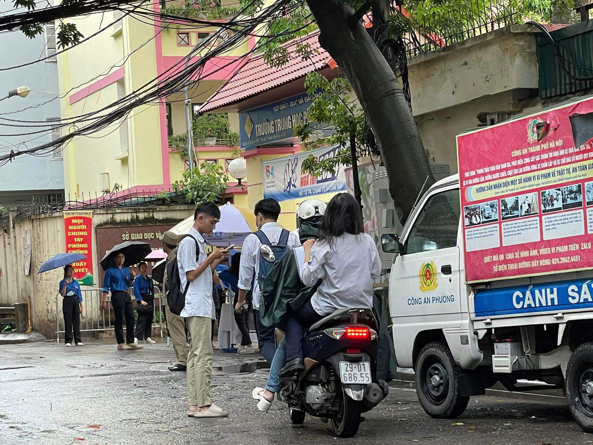 Ghi nhận tại điểm thi Trường THCS Mễ Trì (quận Nam Từ Liêm), từ sáng sớm thí sinh và phụ huynh đã có mặt tại điểm thi. Một cán bộ công an làm thi tại đây cho biết, từ 5h30 đã có phụ huynh đưa con đi thi. Tại đây, mỗi thí sinh di chuyển đến điểm thi nhận được sự quan tâm của đông đảo phụ huynh, từ động viên giữ bình tĩnh làm bài thi tốt đến nhắc nhở nhanh chân di chuyển vào phòng thi cho kịp giờ...