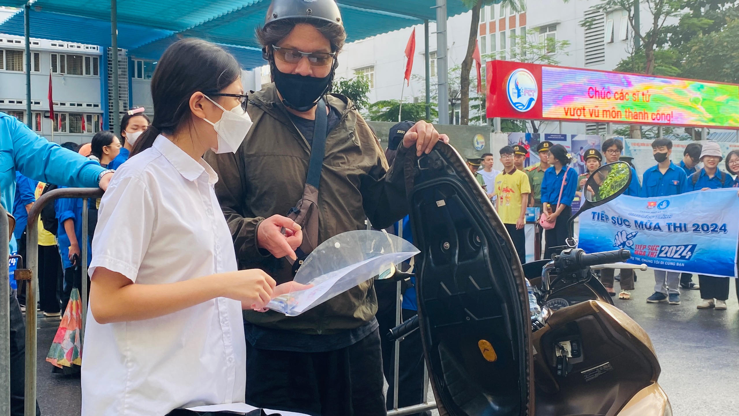 Nghỉ làm để đưa con đi thi, một phụ huynh ở Long Biên có con học tại trường THPT Phan Đình Phùng dự thi tại điểm thi THPT Cầu Giấy, tâm sự: “Sợ nhất là trễ giờ thi. Gần 5 giờ tôi đã xuống bếp chuẩn bị thức ăn cho con. Nhà bên Long Biên nên chưa tới 6h tôi đã đưa con đi thi. Con nói tự đi thi được, nhưng làm cha mẹ sao yên tâm. 12 năm đèn sách quyết định trong 2 ngày thi quan trọng này. Trước đó, con tôi cũng đã đăng ký xét tuyển một vài trường đại học. Vì con xét bằng học bạ và chứng chỉ quốc tế nên đã có một số trường đã nhận, vì thế tôi không tạo áp lực nhiều lên con. Nhưng con vẫn cần tham gia kỳ thi tốt nghiệp để đủ điều kiện xét tuyển". Vị phụ huynh này tin rằng con mình sẽ đạt được 8 – 9 điểm môn Văn.
