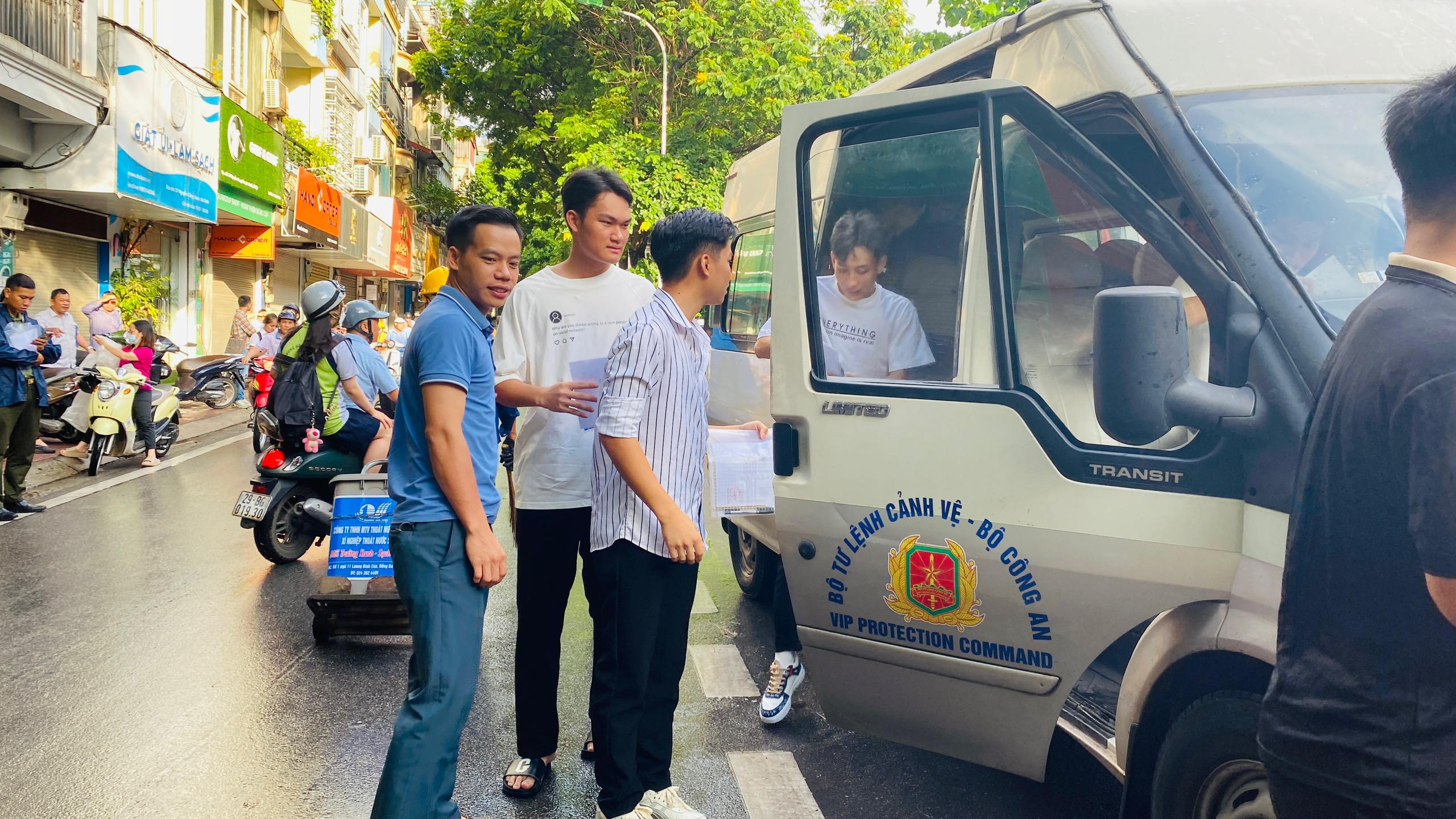 Thí sinh tự do được đưa đến điểm thi bằng xe của lực lượng công an. |