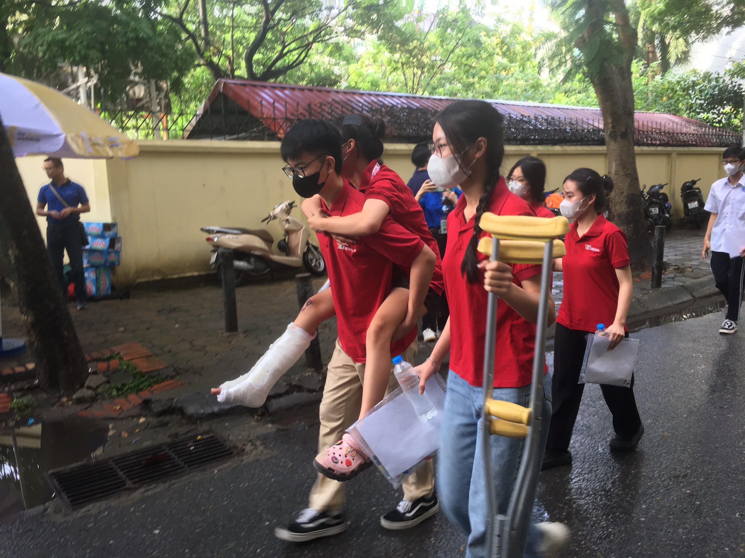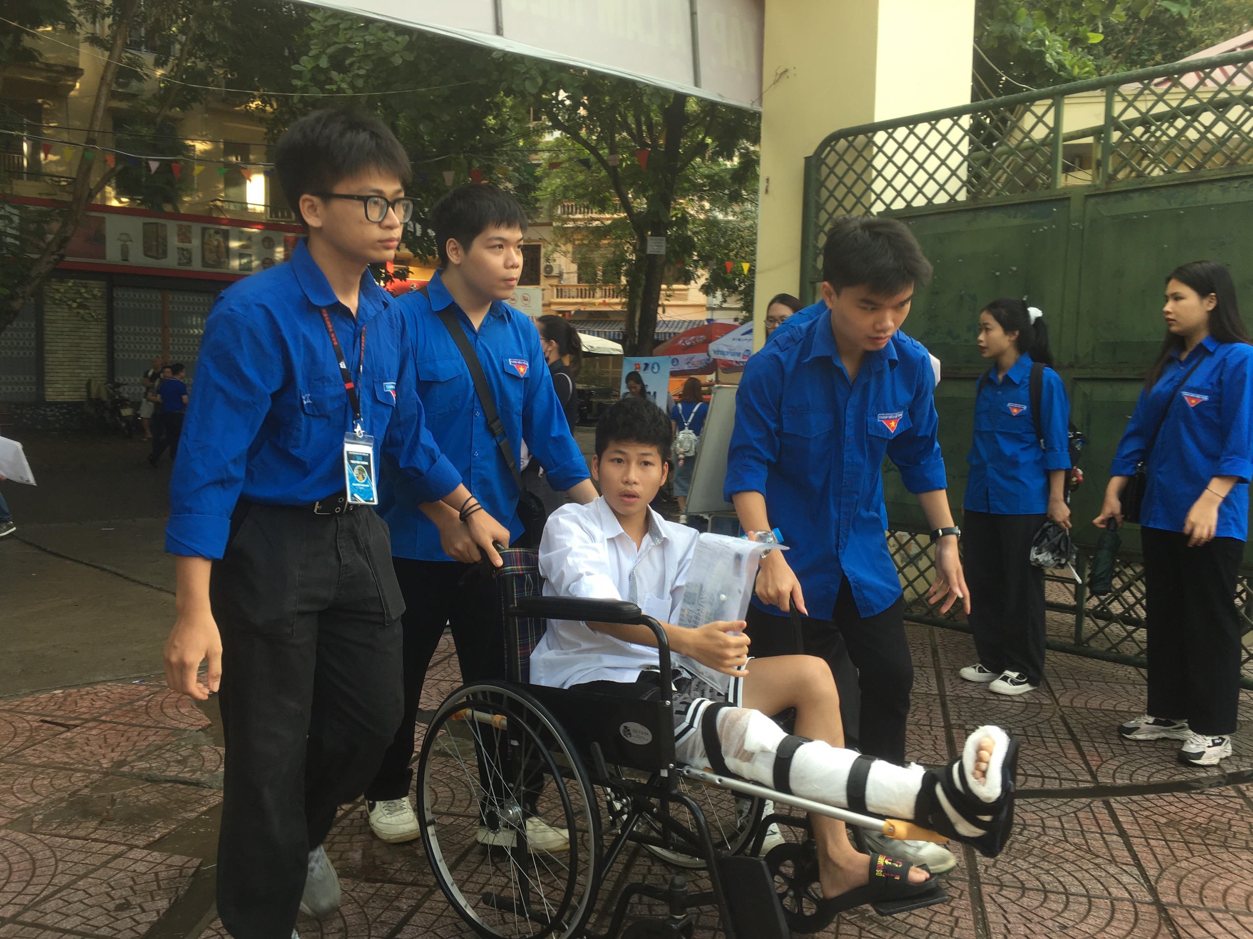 Thí sinh đau chân được hỗ trợ nhiệt tình. |