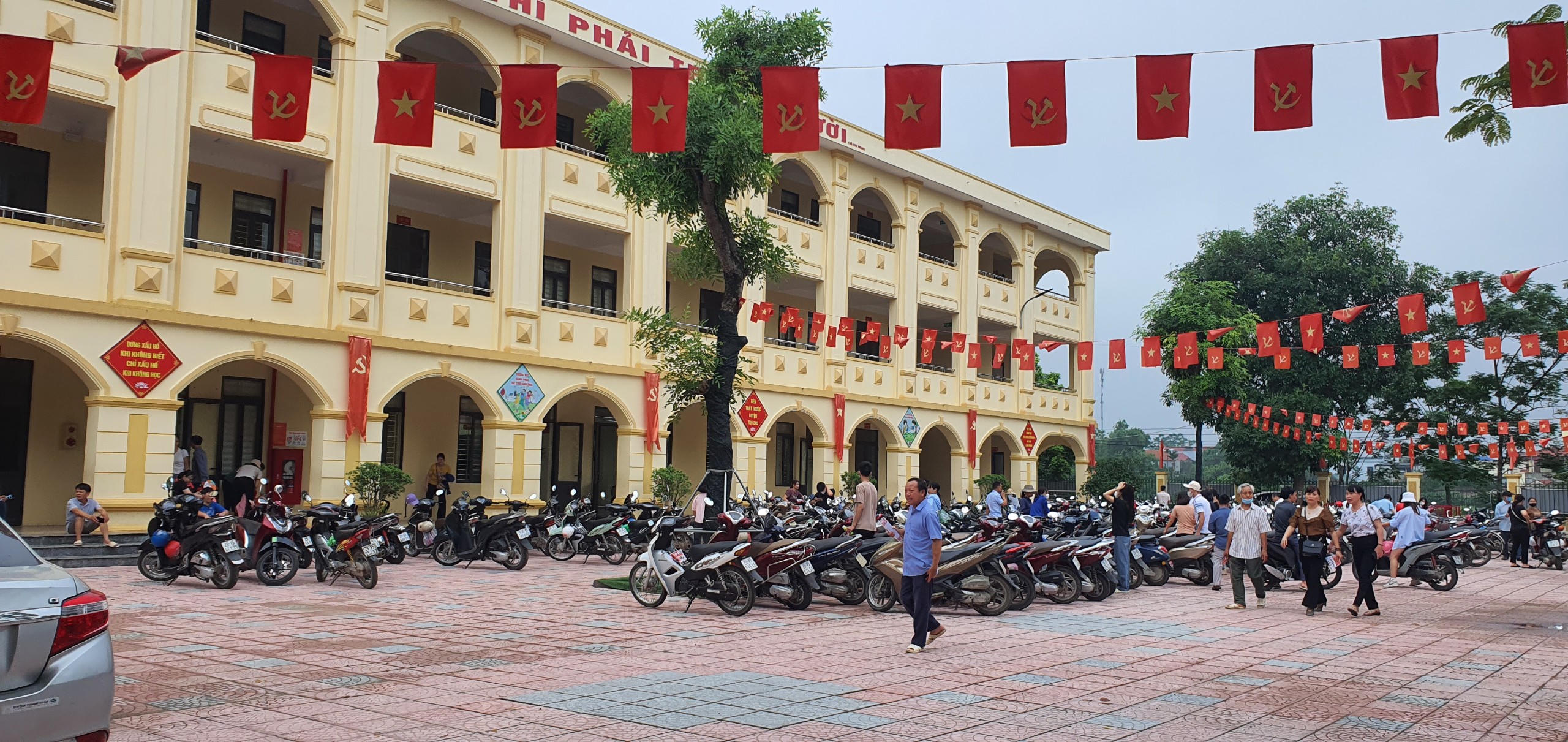 Hội đồng thi vào lớp 10 trường THPT Minh Hà (huyện Thạch Thất) bố trí trường Tiểu học Đại Đồng làm nơi để xe cho phụ huynh và thí sinh. |