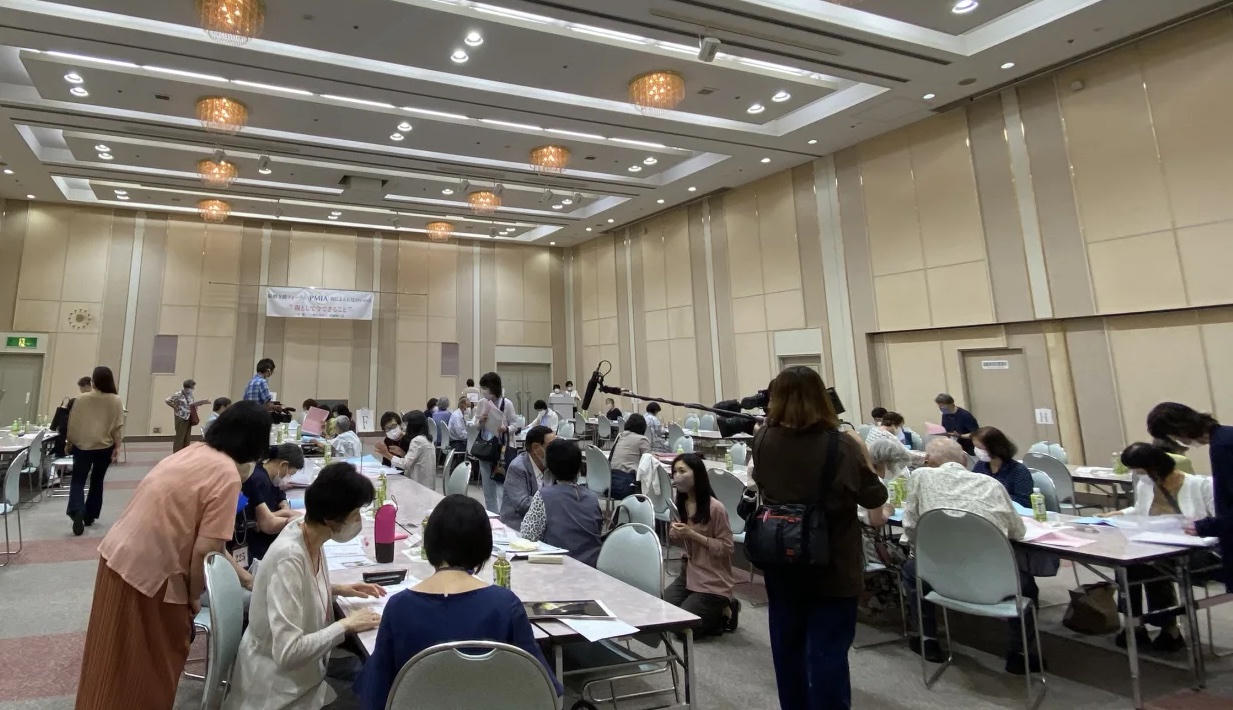 Phụ huynh lớn tuổi mai mối cho con ở phòng hội thảo tại Osaka, ngày 19/7. Ảnh: CNN |