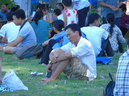 Tại điểm thi miền Trung, các bậc cha mẹ cũng lo lắng không kém sỹ tử thủ đô. Nhiệt độ lên cao ở vùng đất gió Lào càng khiến cho các bậc phụ huynh vất vả khi phải ngồi ngoài trời hàng mấy tiếng đồng hồ để chờ đợi con.