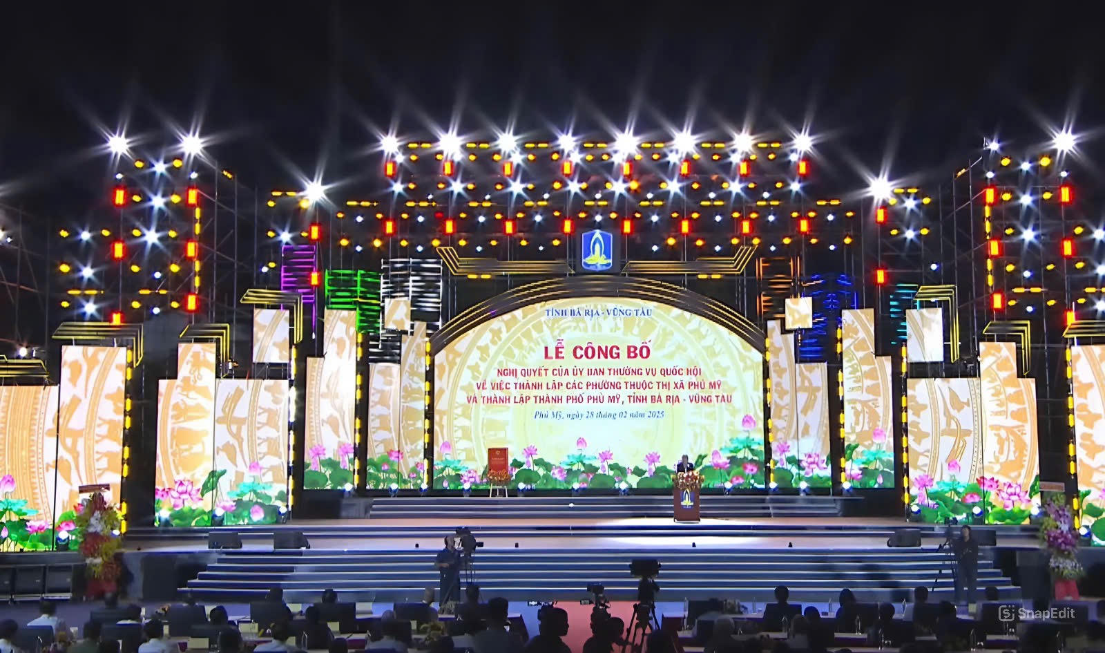 Toàn cảnh Lễ công bố Nghị quyết của Ủy ban Thường vụ Quốc hội về việc thành lập các phường thuộc thị xã Phú Mỹ và nâng cấp lên thành phố Phú Mỹ |