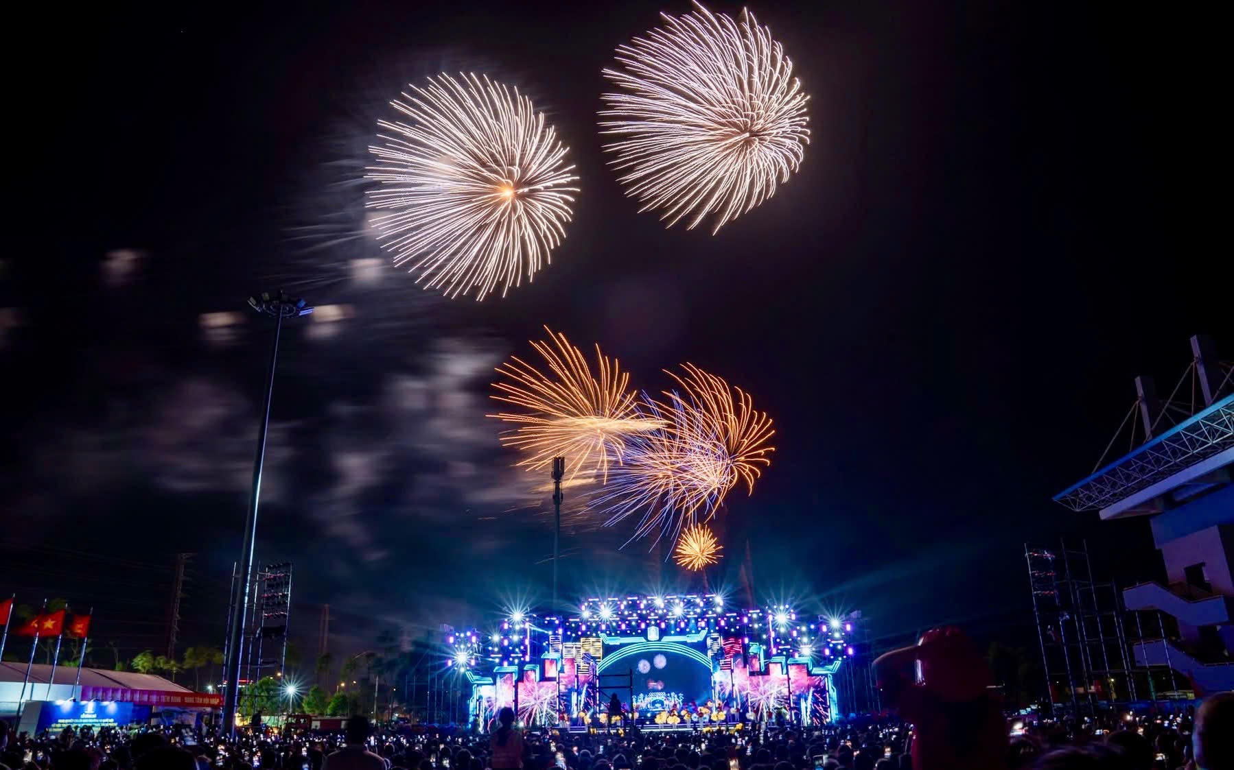 Màn bắn pháo hoa rực rỡ kéo dài 15 phút chào mừng thành lập thành phố Phú Mỹ. Hình: MK |
