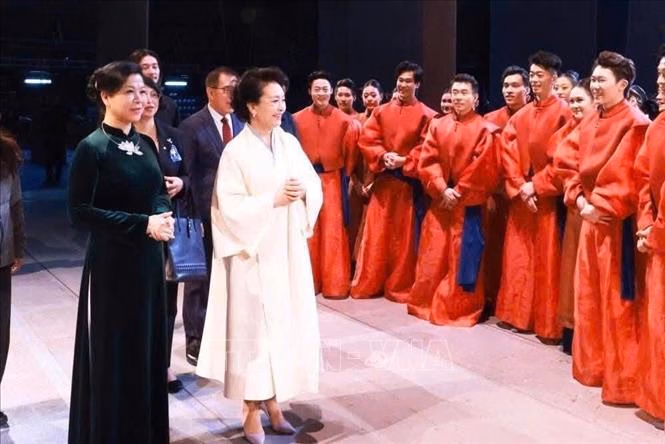 Trong khuôn khổ chuyến thăm cấp Nhà nước đến Trung Quốc của Tổng Bí thư, Chủ tịch nước Tô Lâm và Phu nhân, sau Lễ đón chính thức, Phu nhân Tổng Bí thư, Chủ tịch nước Trung Quốc Tập Cận Bình - Giáo sư Bành Lệ Viên đã cùng Phu nhân Tổng Bí thư, Chủ tịch nước Tô Lâm - bà Ngô Phương Ly thăm Nhà hát lớn quốc gia Trung Quốc.