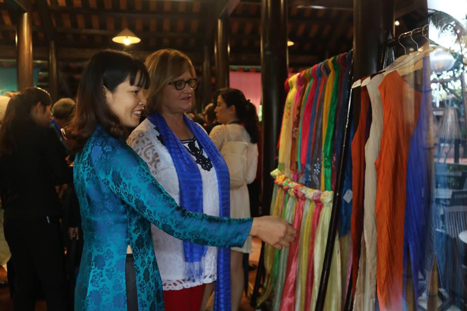 Tại mỗi điểm dừng chân trên đường, các phu nhân và phu quân còn ghé vào các điểm bán hàng lưu niệm thăm hỏi, trao đổi với các tiểu thương. Sau đó, các phu nhân, phu quân bách bộ một số tuyến phố cổ và kết thúc chuyến tham quan tại Làng lụa Hội An.