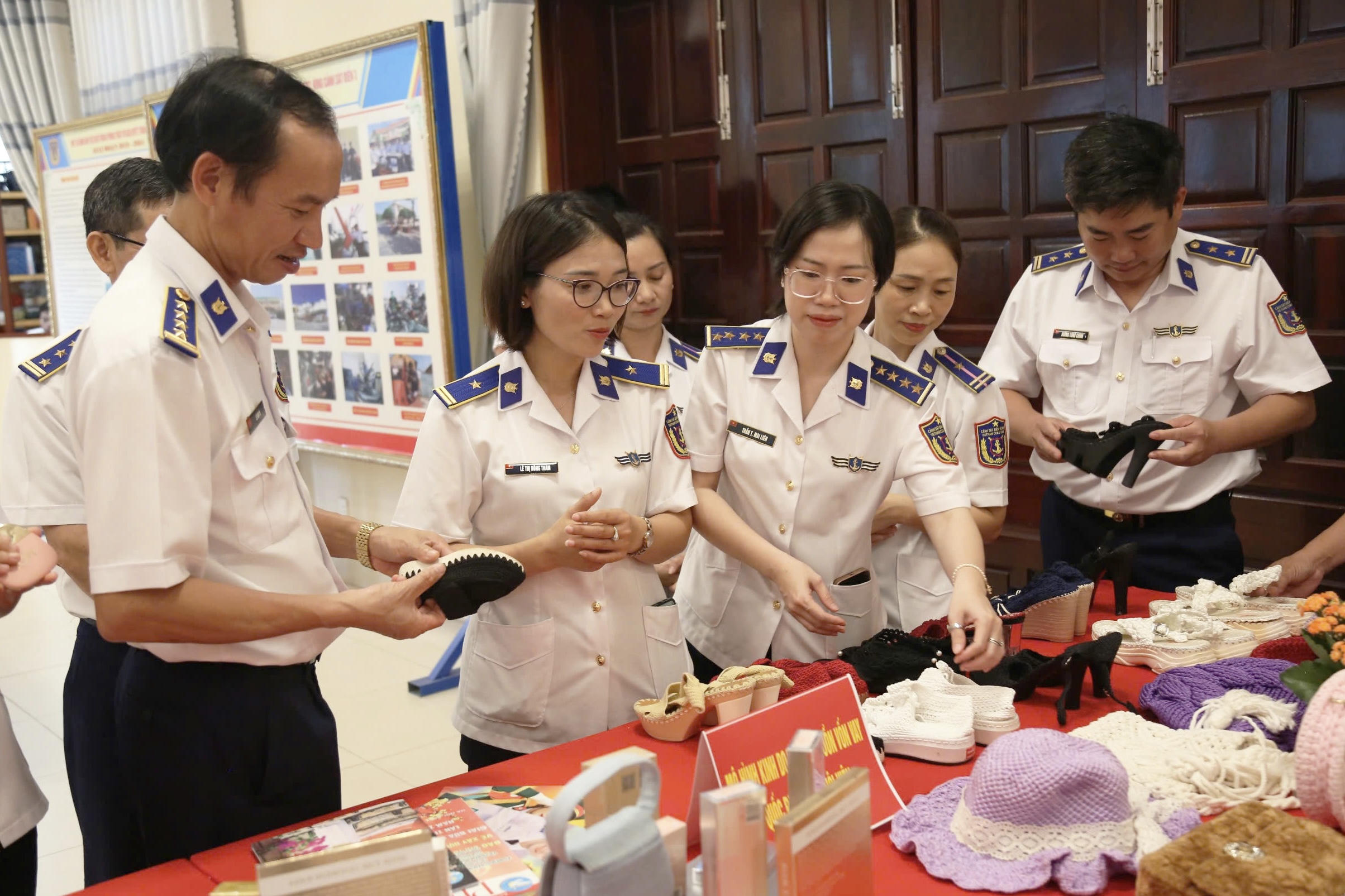 Các đại biểu tham quan gian hàng của Hội Phụ nữ Bộ Tư lệnh Vùng Cảnh sát biển 3 bên lề Hội nghị họp mặt. |