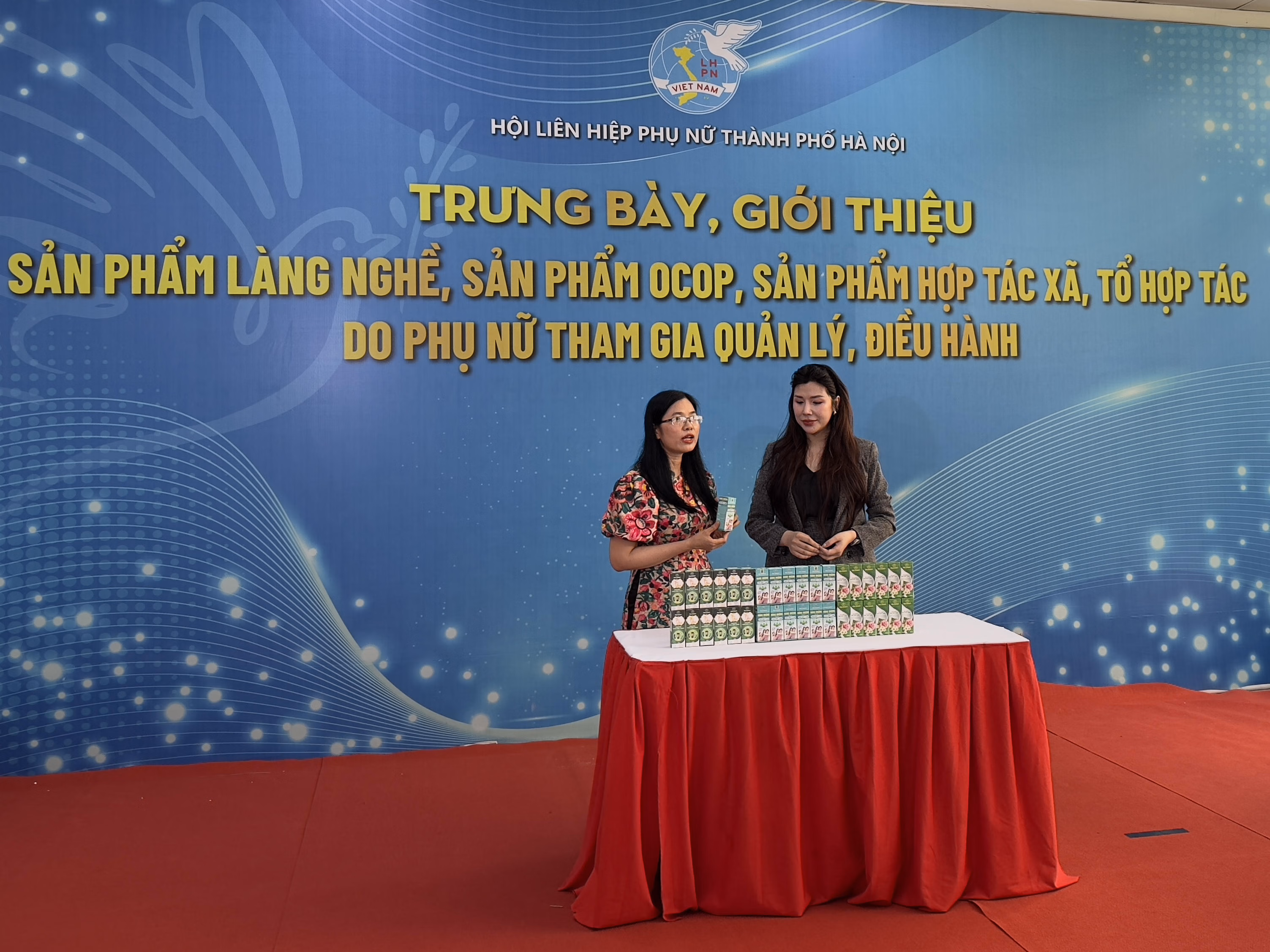 Tại chương trình còn diễn ra hoạt động trưng bày, quảng bá, giới thiệu hơn 100 sản phẩm làng nghề, sản phẩm OCOP và các sản phẩm tiêu biểu của các hợp tác xã, doanh nghiệp do phụ nữ làm chủ. Kết hợp cùng hoạt động livestream với sự tham gia của các KOL nhằm quảng bá, kết nối tiêu thụ sản phẩm trên các nền tảng số – một hình thức xúc tiến thương mại hiện đại, phù hợp với xu thế chuyển đổi số hiện nay.