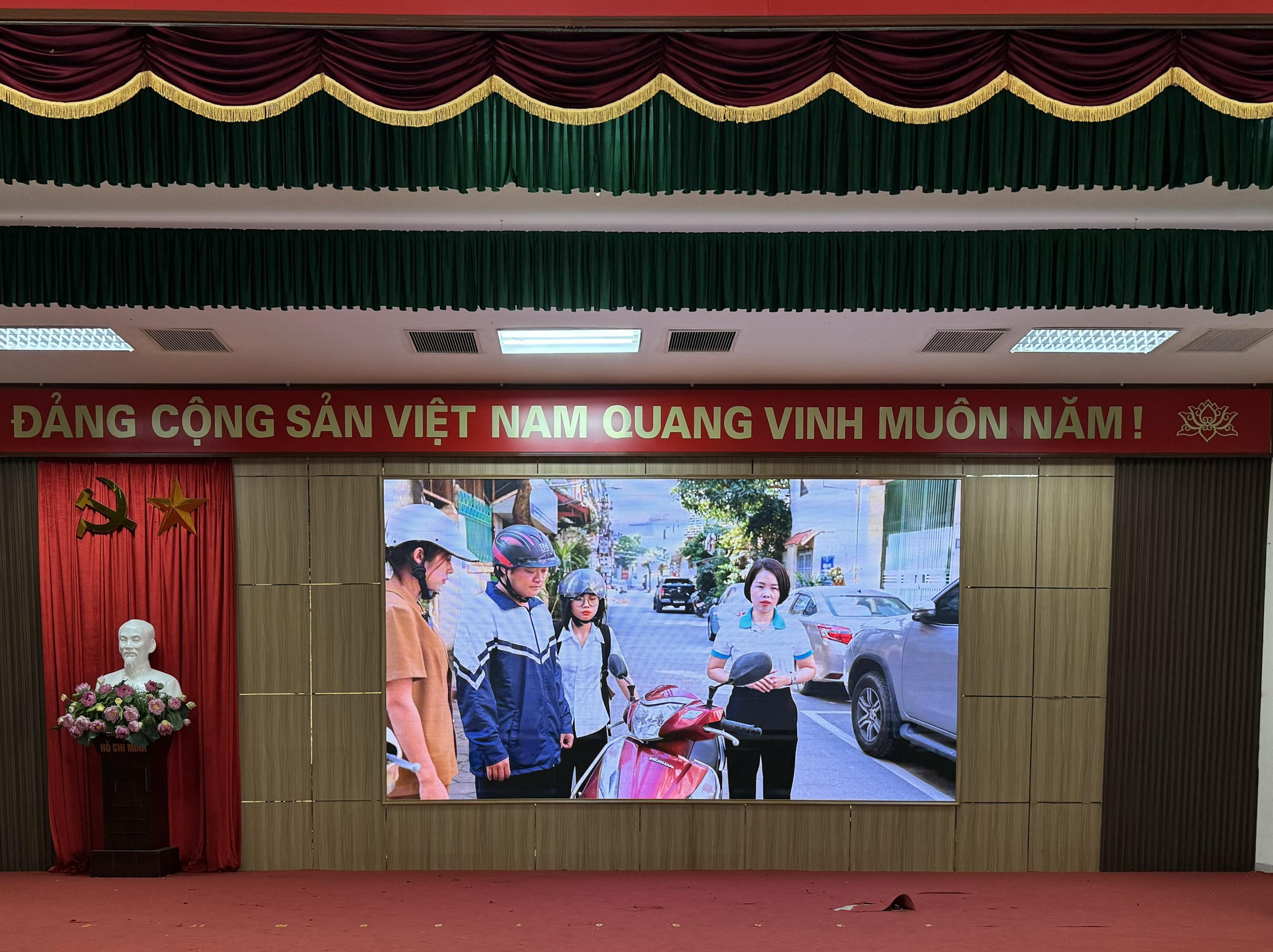 Đặc biệt, trong phần giao lưu, Đại uý Nguyễn Thị Hồng Nhung đã nêu ra những con số đáng báo động về việc xử lý vi phạm giao thông trong lứa tuổi học sinh: “Trong một tháng cao điểm từ 01/10 - 31/10/2024, chúng tôi đã xử lý 7.328 trường hợp trong đó có 6.024 trường hợp các em ở lứa tuổi cấp 2 và cấp 3 không đội mũ bảo hiểm khi tham gia giao thông. Chúng tôi đã tạm giữ 3.624 phương tiện và trong đó xử lý phụ huynh là 824 trường hợp”.