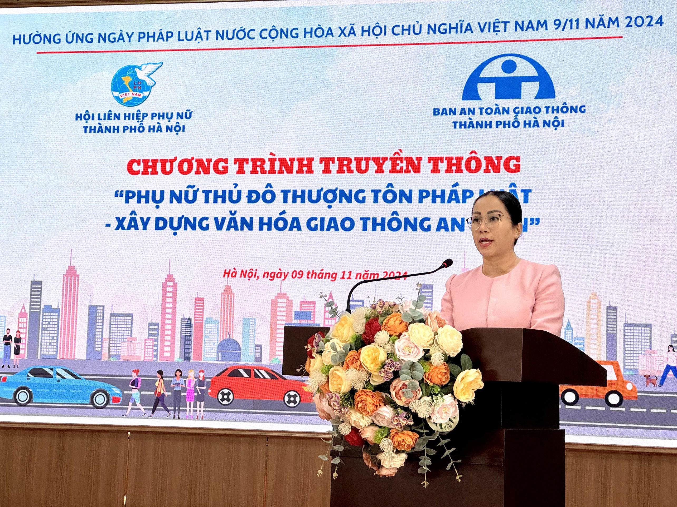 (PLVN) - Sáng ngày 09/11/2024, Hội LHPN TP Hà Nội phối hợp với Ban An toàn giao thông TP Hà Nội tổ chức Chương trình truyền thông “Phụ nữ Thủ đô thượng tôn pháp luật - Xây dựng văn hóa giao thông an toàn”.