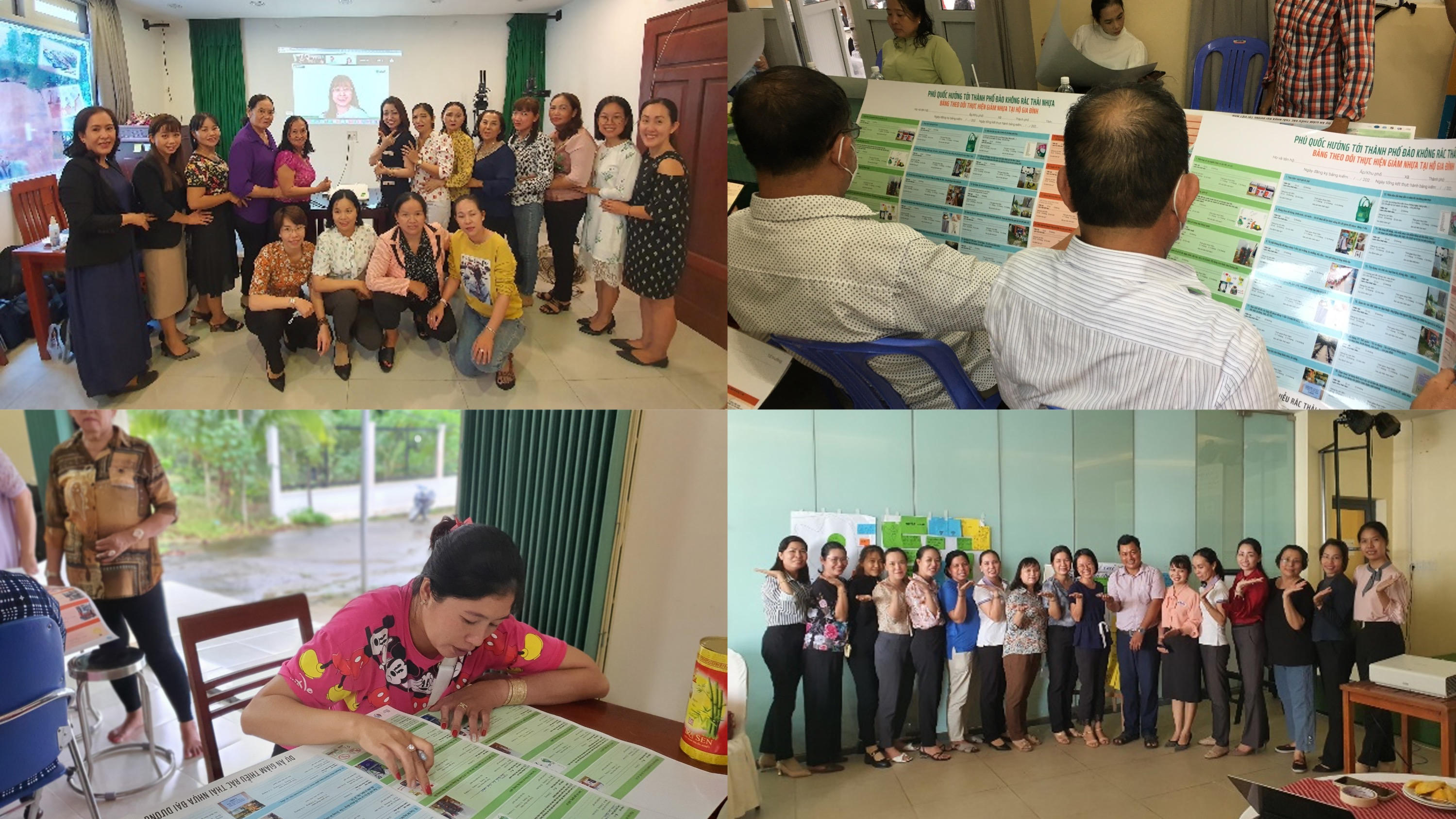 Đồng thời, tổ chức này cũng phối hợp với Hội LHPN thành phố triển khai chuỗi chương trình “Truyền thông và vận động giảm nhựa theo phương pháp giáo dục hành động”. Nội dung bao gồm: Tập huấn về “Phương pháp kể chuyện bằng hình ảnh”; Tập huấn về “Tổng quan về tình hình rác thải nhựa, giá trị bảo tồn của Phú Quốc, và phương pháp truyền thông thay đổi hành vi”; Tập huấn về “Kỹ năng truyền thông trực tuyến thông qua Facebook, Zalo, và nền tảng họp trực tuyến Google Meet”.