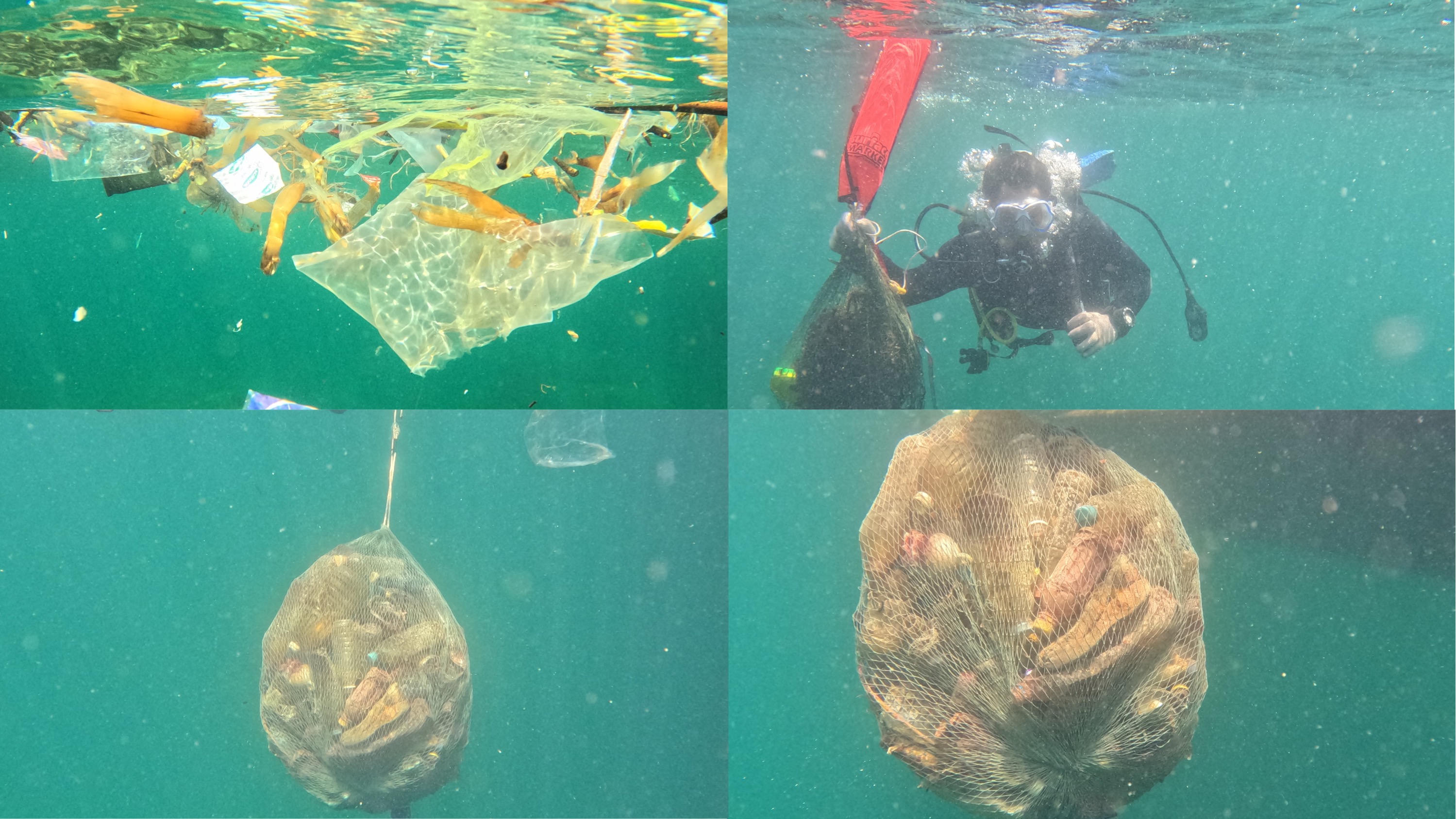 Nhóm tình nguyện viên Phú Quốc Sạch và Xanh dọn rác dưới biển. Ảnh: Trần Văn Sanh |