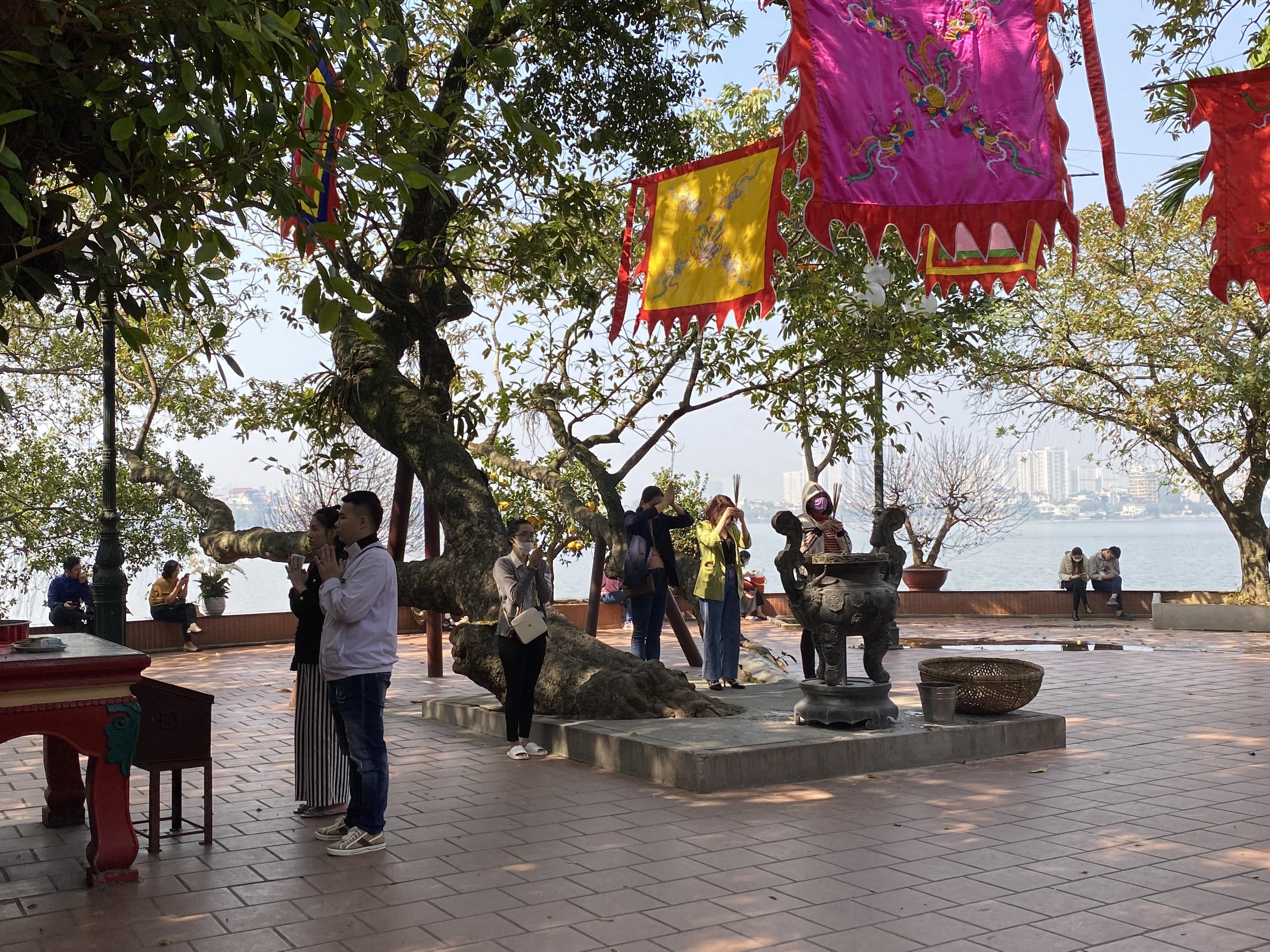 Khung cảnh thưa vắng phủ Tây Hồ điểm đến vốn nổi tiếng đông khách dịp cuối năm, đầu năm. |