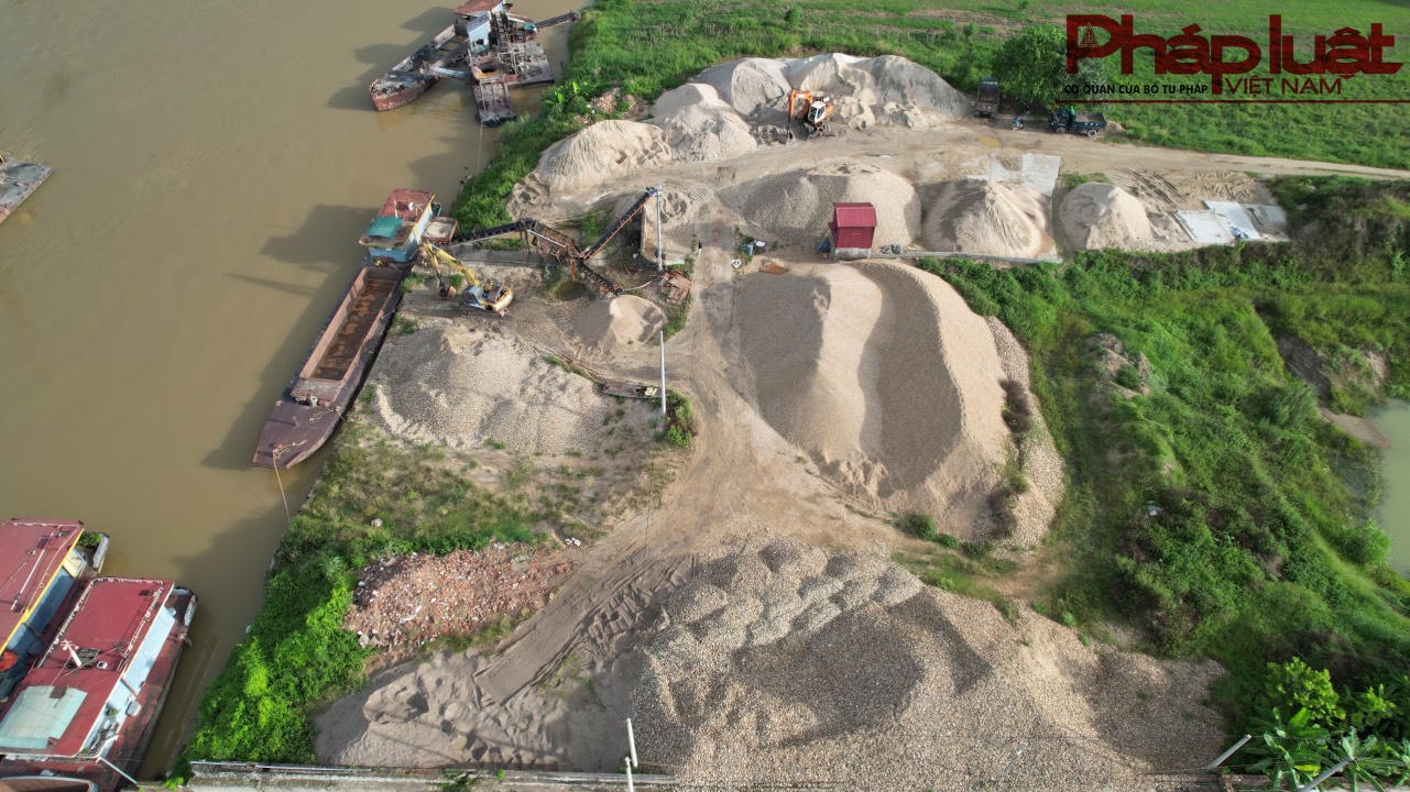 PV ghi lại hình ảnh vào đầu tháng 08/2023, trên bến bãi thường xuyên có một lượng lớn cát sỏi làm vật liệu xây dựng được tập kết; cùng với đó là một dàn máy nghiền sỏi và máy xúc luôn túc trực sẵn. Người dân sống quanh đây cho biết, bến bãi này vẫn đang hoạt động bình thường. Họ mua cát của các tàu vận chuyển rồi bán cho người dân hoặc doanh nghiệp có nhu cầu.