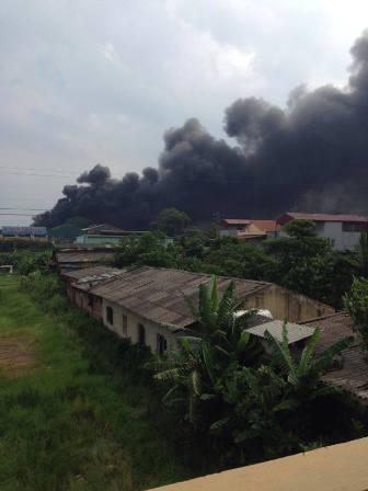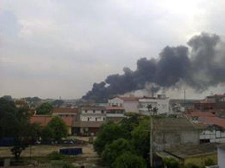 Theo quan sát, đám khói bốc lên cao hàng trăm mét, có thể nhìn thấy cách xa hàng chục km. Đám cháy được xác định tại Công ty nhôm Sông Hồng (cạnh công ty giấy Việt Trì).