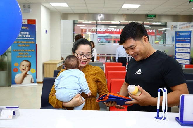 Chị Kim Dung, Tp. Việt Trì, Phú Thọ cho biết: “Ngày trước, mỗi lần đến lịch tiêm cho bé là hai vợ chồng phải nghỉ làm để đi mua vắc xin cho con mà có khi không được, lúc mua được thì lại chịu giá cao. Bây giờ, VNVC đã về với Phú Thọ, có đầy đủ các loại vắc xin với giá cả cạnh tranh, lại còn rất nhiều ưu đãi, quà tặng kèm theo. Gia đình tôi vui lắm nên tranh thủ đăng ký gói vắc xin cho con để bé được tiêm đúng lịch, đúng phác đồ.”