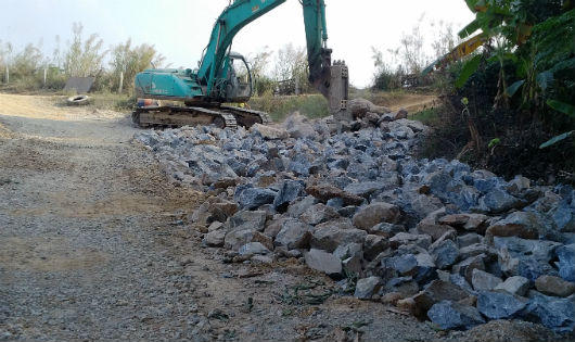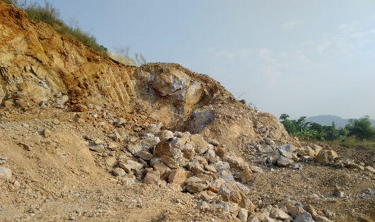 Trước những phản ánh của người dân, PV Báo Pháp luật Việt Nam đã tiếp cận hiện trường mỏ đá. Tại hiện trường, máy xúc, máy cẩu, máy nghiền đá… đang ngang nhiên hoạt động khai thác, chế biến đá rầm rộ như một đại công trường với nhiều thợ đang hăng say lao động nhưng không hề có trang bị bảo hộ lao động. Mỏ đá tan hoang, rất nhiều tảng đá lớn, đá đã nghiền nhỏ được đổ thành từng bãi, chất đống nằm ngổn ngang giữa khai trường mỏ rộng cả hàng chục nghìn mét vuông.