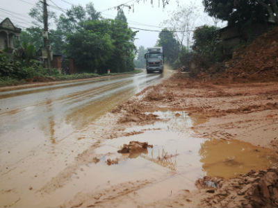 Có mặt tại xã Phù Ninh, PV chứng kiến hoạt động khai thác đất diễn ra rầm rộ, ngang nhiên. Từ con đường nối với quốc lộ 2 thuộc khu 5, 6,12, 13, 14 của xã, mặt đường lầy lội đầy vết bánh xe tải “ăn đất”, trở đi làm rơi vãi, bẩn thỉu. Tại khu 13, đập vào mắt PV là cả một khoảng đồi rộng lớn bị xới tung, đào sâu, còn trơ vết hằn lưỡi máy xúc, bánh xe chạy vừa mới khai thác.