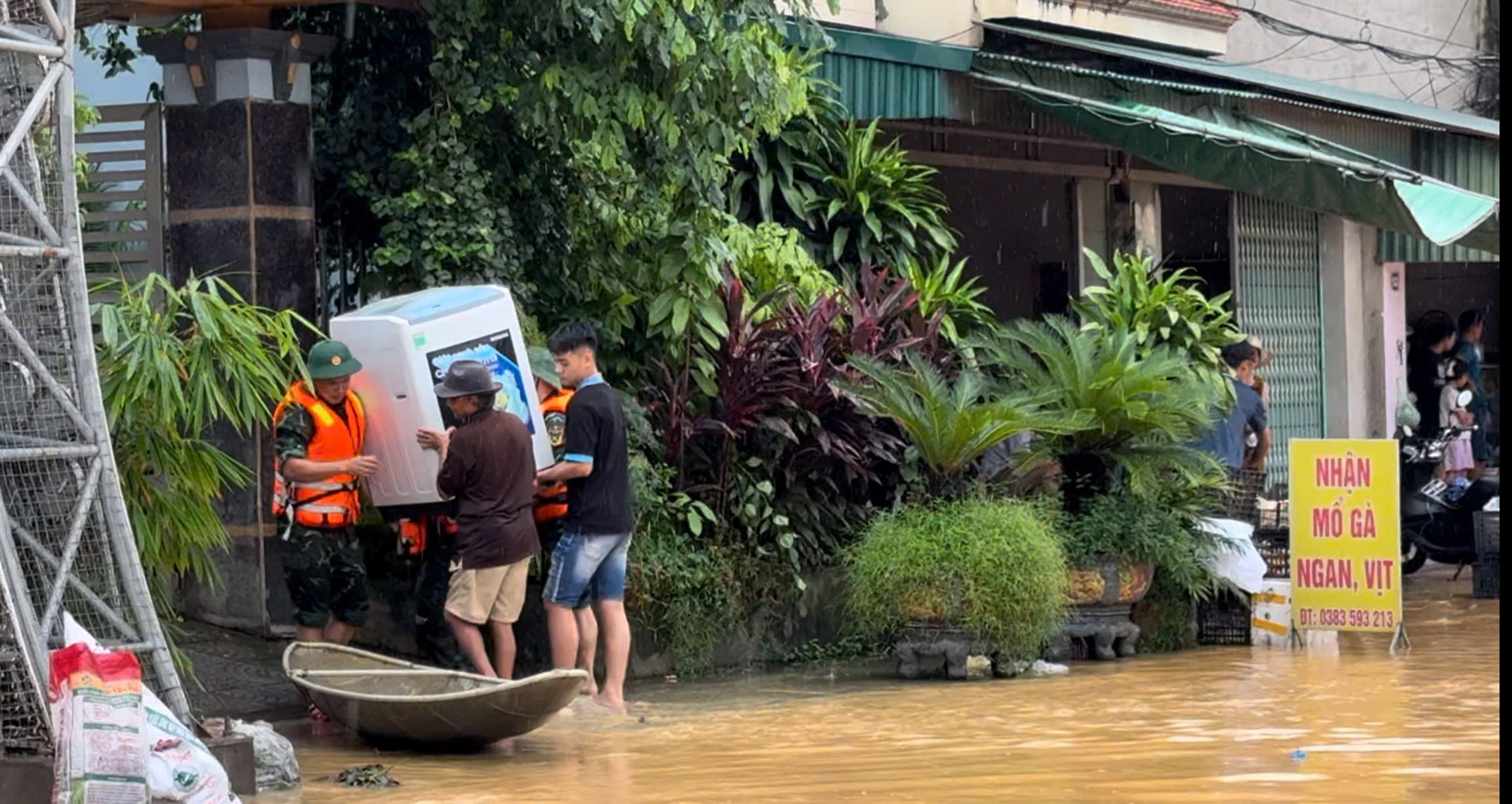 Lực lượng quân đội hỗ trợ người dân di chuyển đồ đạc ra khỏi vùng ngập lụt. Ảnh: Ngọc Phúc |