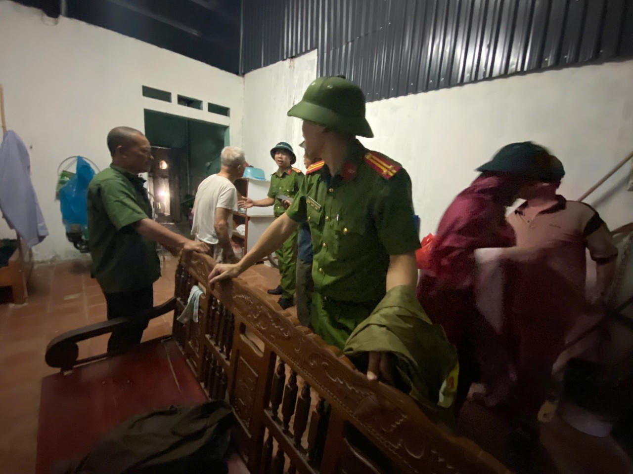 Lực lượng chức năng hỗ trợ người dân di dời tài sản đến nơi an toàn. |